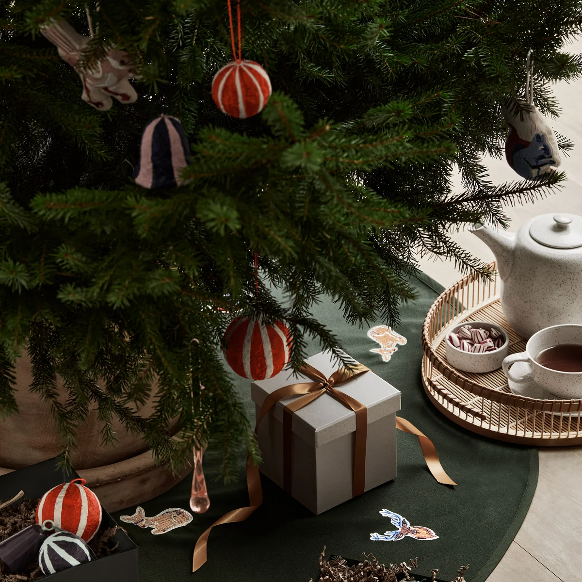 Die Deer Weihnachtsbaumdecke aus dem dänischen Hause Broste Copenhagen sorgt auf auf dekorative Weise für einen funktionalen Hingucker in der Weihnachtszeit. Die Weihnachtsbaumdecke fängt mühelos Nadeln auf und bietet gleichzeitig die optimale Präsentierfläche für Geschenke aller Art. Die runde Decke mit Hirsch-Stickereien wird aus Baumwolle gefertigt und verfügt über einen Durchmesser von Ø120 cm in unterschiedlichen Farbausführungen. Ebenfalls in der Bird-Variante im Shop erhältlich.