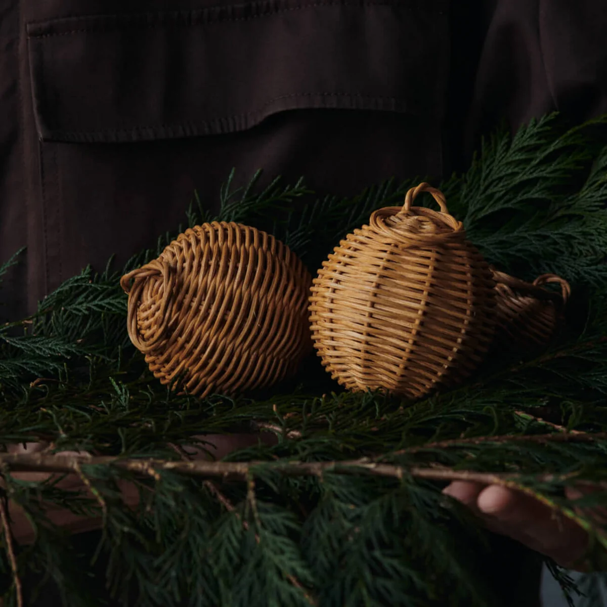 Das Braided Weihnachtsschmuck von Ferm Living bringt traditionelles Handwerk in moderne Weihnachtsdekoration. Jeder Anhänger wird sorgfältig von Hand aus 100 % Rattan geflochten und überzeugt durch sein natürliches, honigfarbenes Material. Der schlichte, analoge Look verleiht jeder festlichen Umgebung Wärme und Authentizität. Ausgestattet mit Miniring und Aufhängung aus Rattan lässt sich der Schmuck flexibel einsetzen – am Weihnachtsbaum, an Zweigen oder als Teil einer dekorativen Girlande.