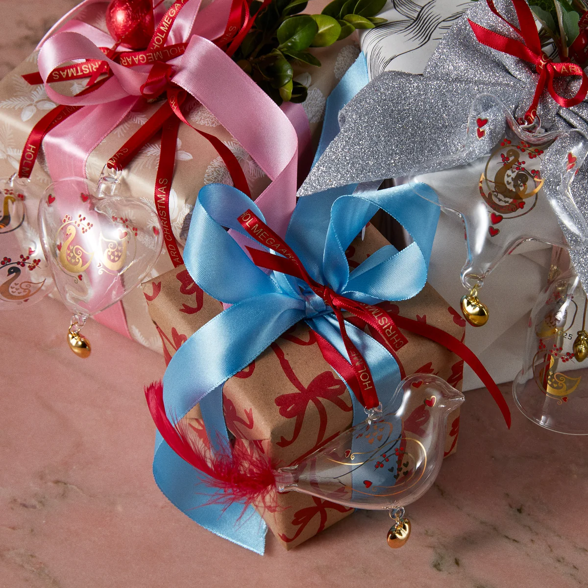 Die Weihnachtsdekorationen werden mit passendem Bändchen zum Aufhängen geliefert.