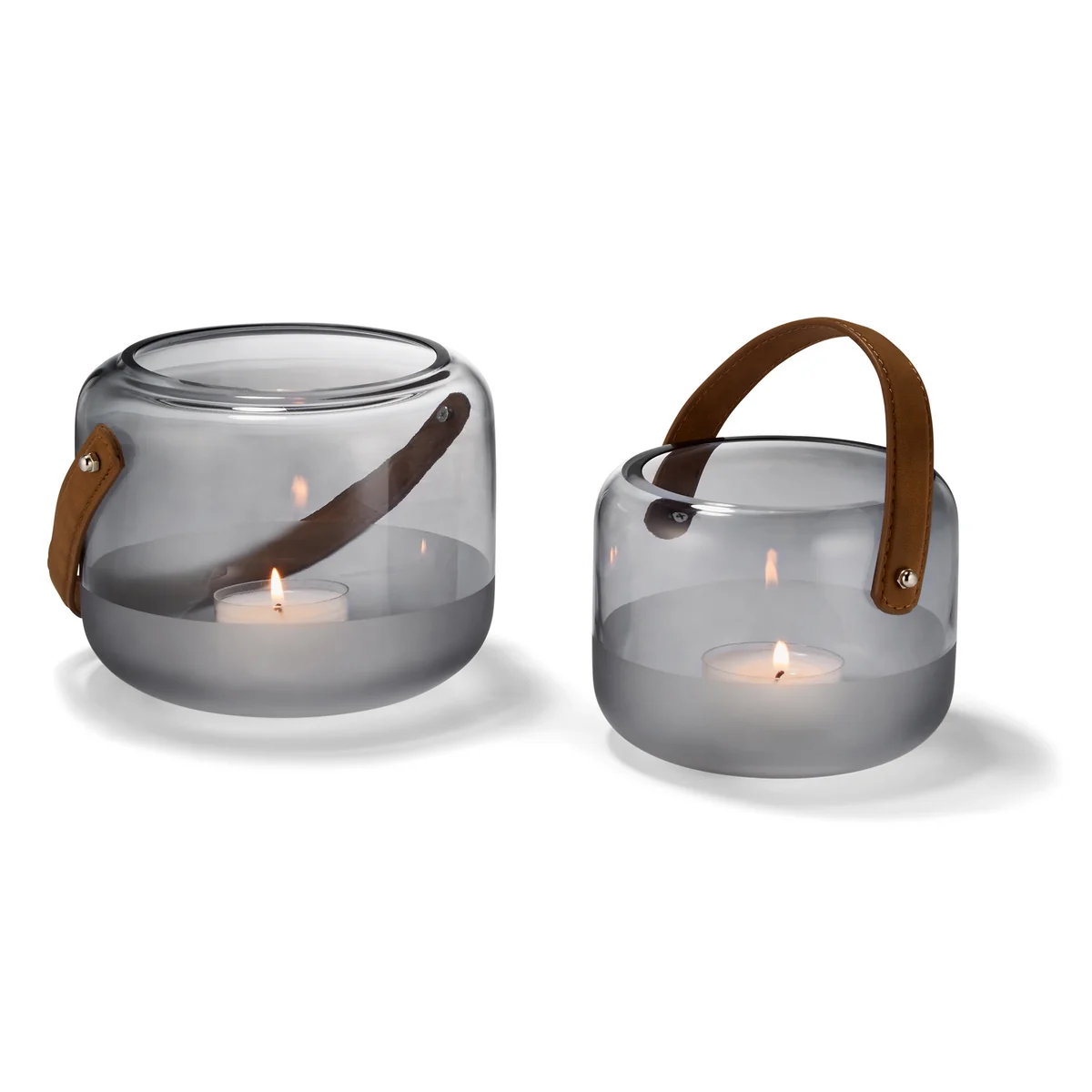 Windlicht aus Glas mit Ledergriff