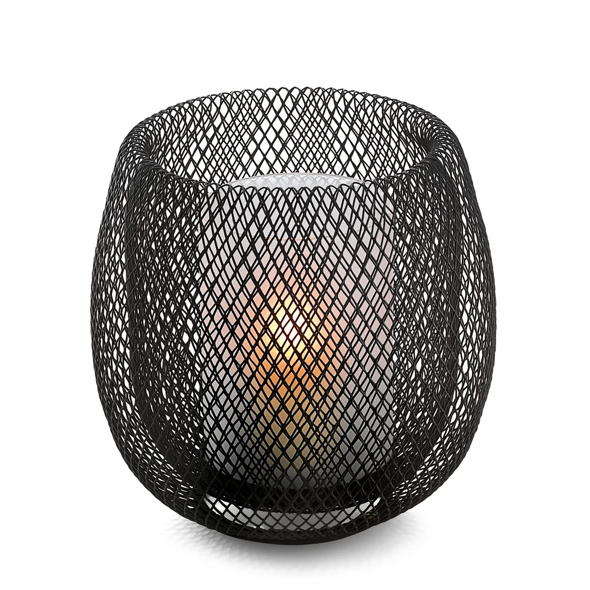 Windlicht mit feinem Stahlgitter