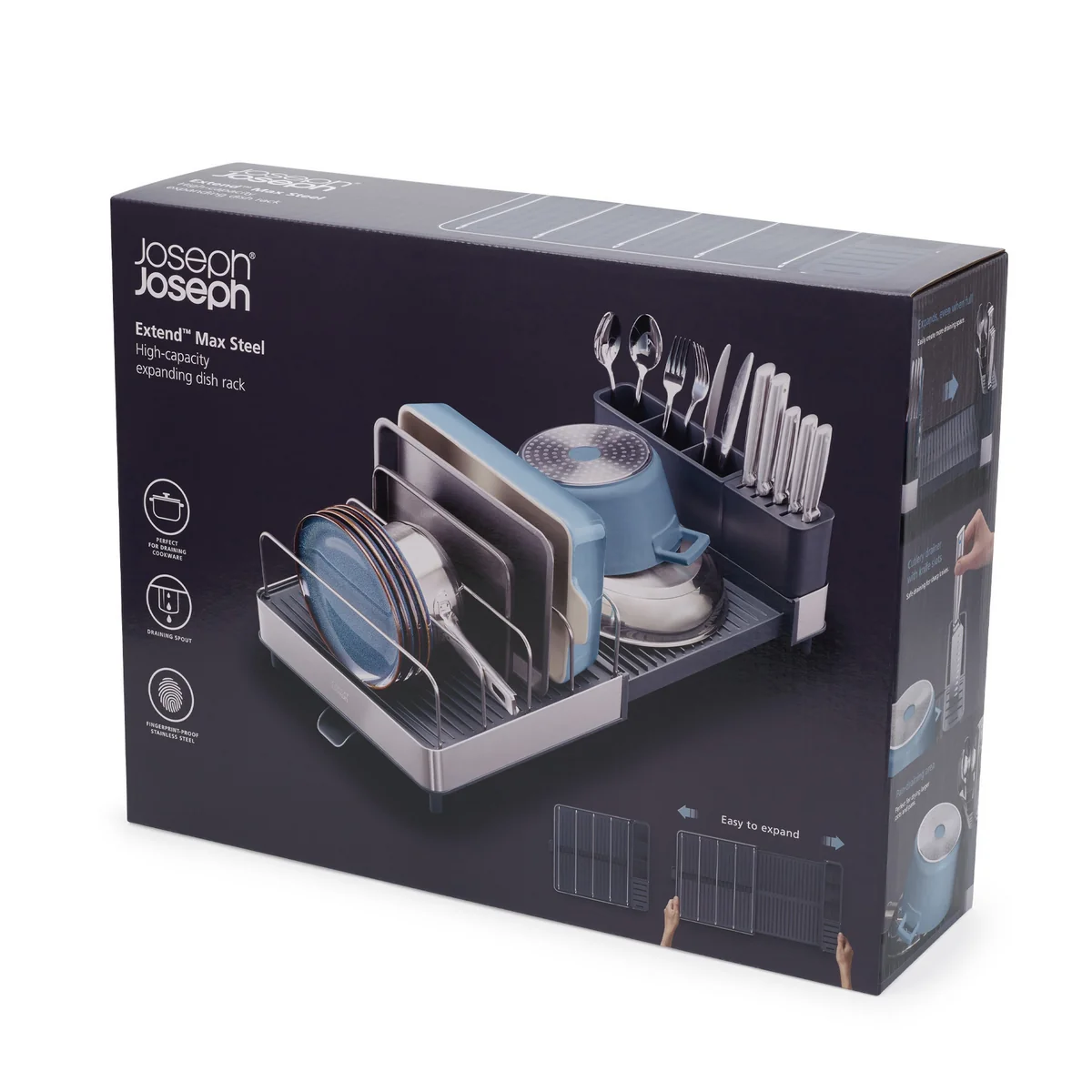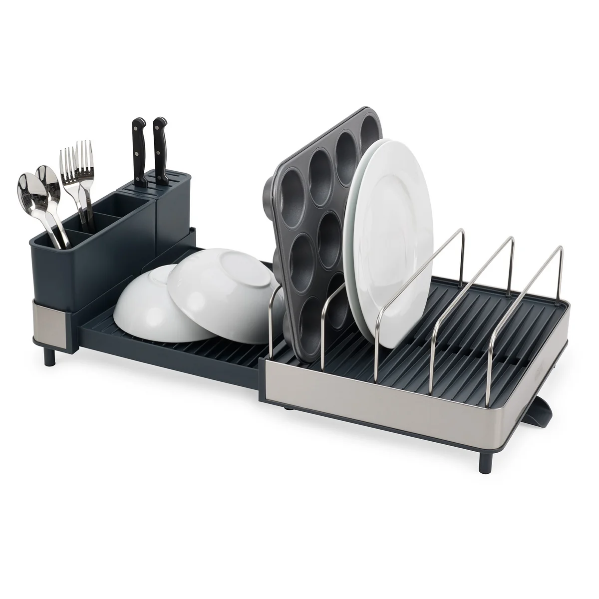 Der Joseph Joseph Extend Max Steel Abtropfkorb ist die ultimative Lösung für die Organisation und Aufbewahrung der Geschirrteile nach dem Abwaschen. Mit seinem intelligenten Design bietet dieser Abtropfkorb nicht nur ausreichend Platz für Geschirr, sondern auch eine Vielzahl von praktischen Funktionen, die die Küchenarbeit erleichtern.