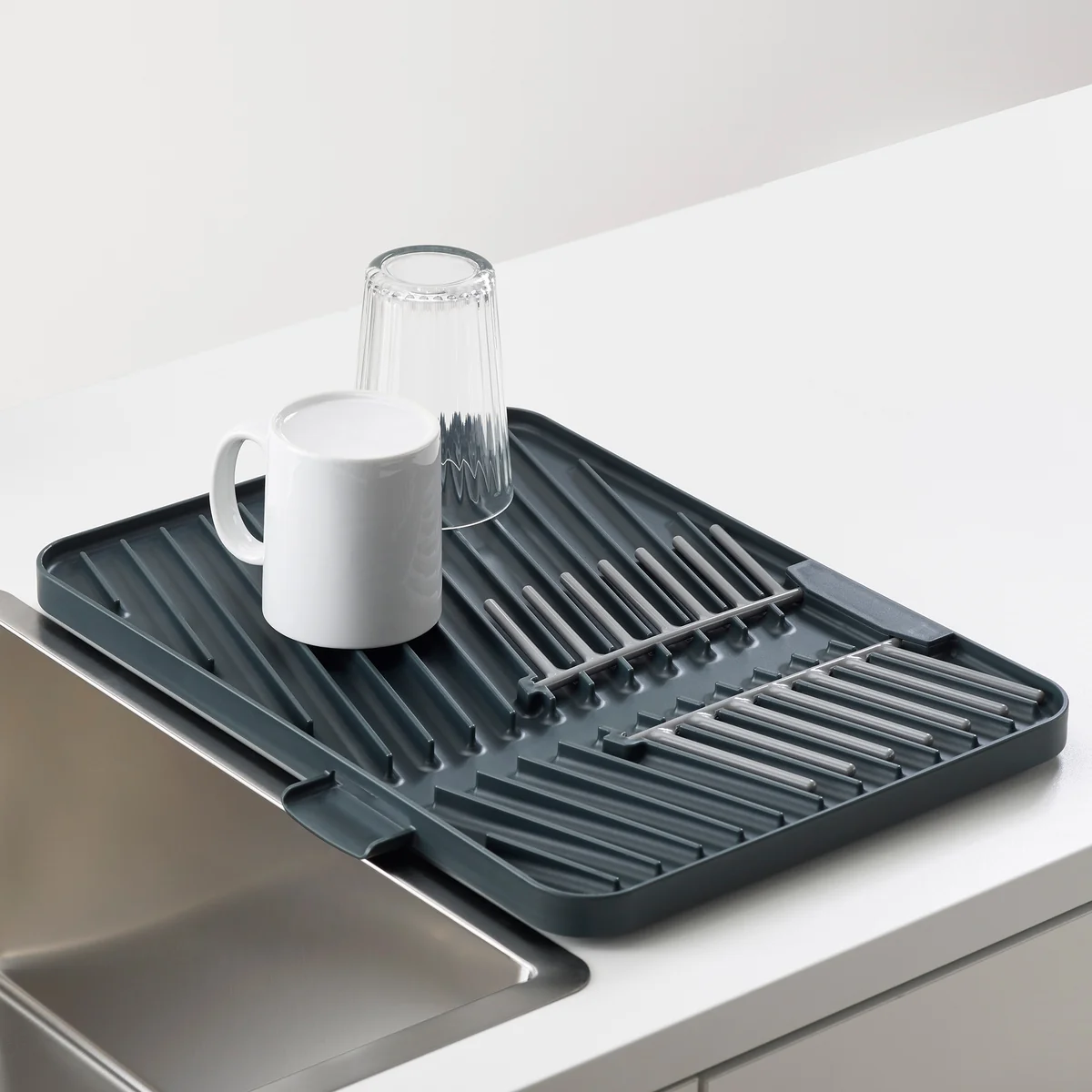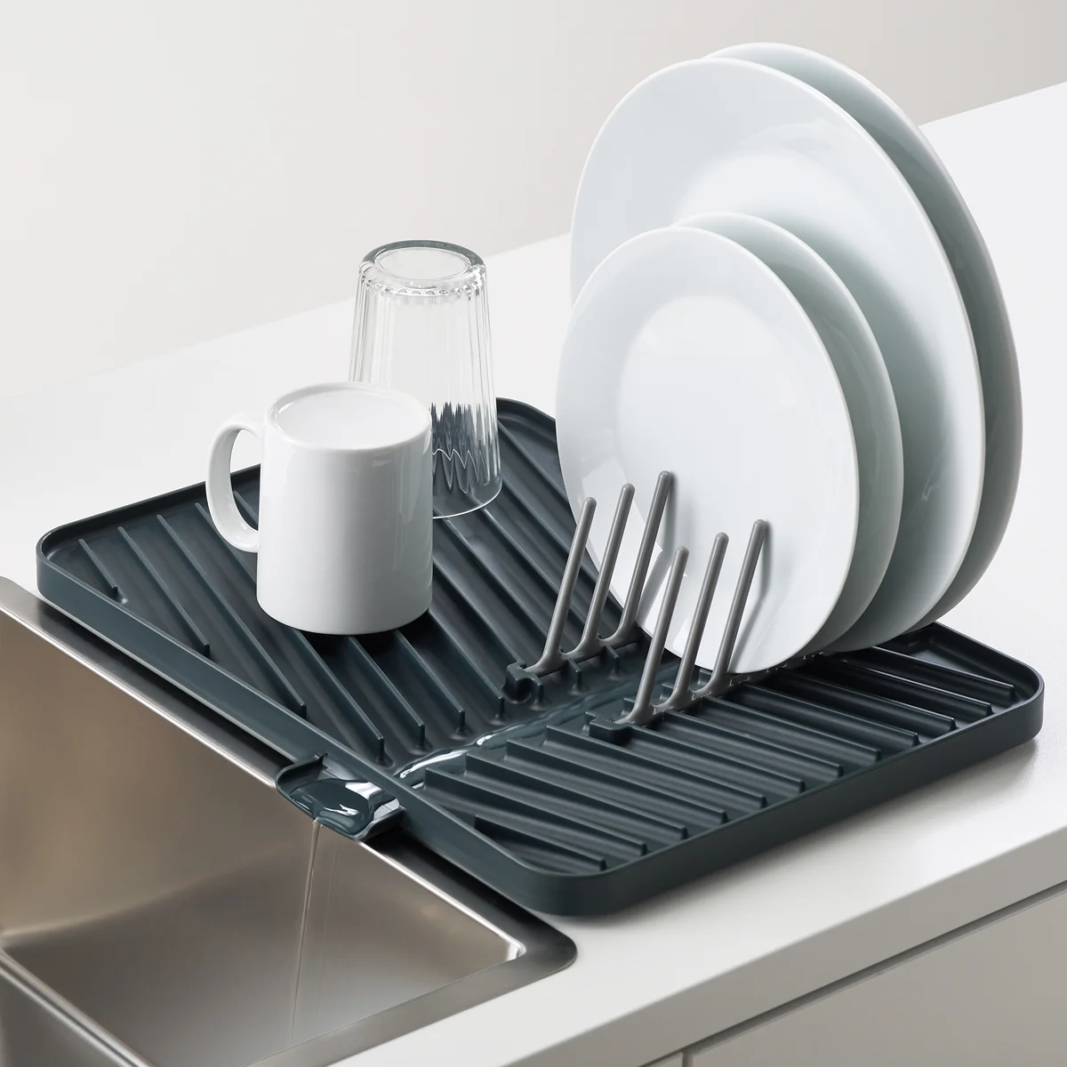 Flip-Up von Joseph Joseph ist eine praktische und klappbare Abtropfanlage zum Trocknen von 6 Esstellern sowie einer Vielzahl von Tassen, Gläsern und Schüsseln. Nach Gebrauch kann sie einfach zusammengefaltet und kompakt verstaut werden.