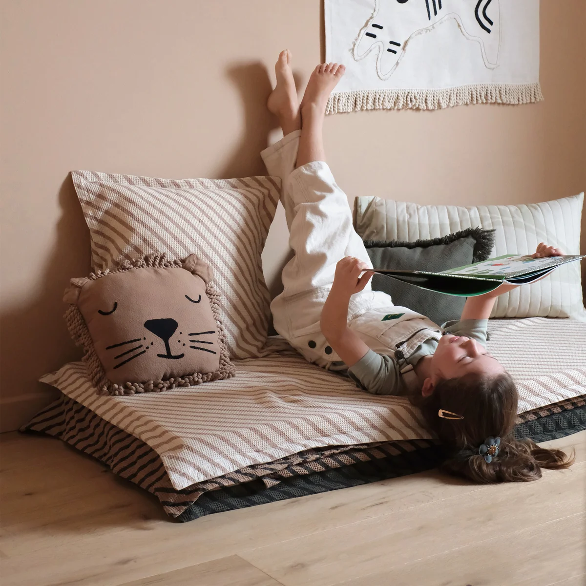 Die Landscape Bodenmatte von Nobodinoz formt die perfekte Spiele- und Leseecke im Kinderzimmer. Die Matten können nebeneinander angereiht werden und vergrößern die Fläche. Mit kühnen Mustern und abwechslungsreichen Texturen, ist die Bodenmatte zeitlos und verleiht jedem Kinderzimmer schöne und zierende Akzente, die von Landschaften inspiriert sind.