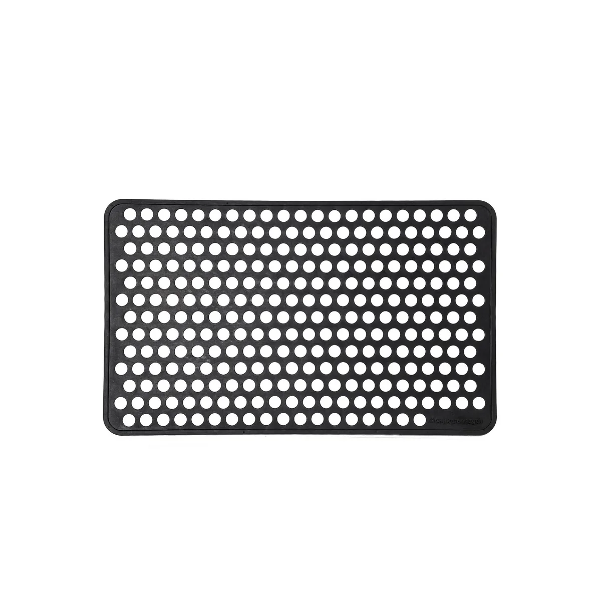 Die Gummi-Fußabtreter von tica copenhagen ist die optimale Matte für den Eingangsbereich und vor der Haustür. Die Matte wird aus 60 % recyceltem Gummi hergestellt und ist dadurch recht schwer. Deshalb liegt die Matte sowohl im Innen- als auch im Außenbereich stabil und fest auf dem Boden und verrutscht nicht. Die Matte kann ganzjährig draußen liegen und ist mit einem Staubsauger oder mit Wasser leicht zu reinigen.