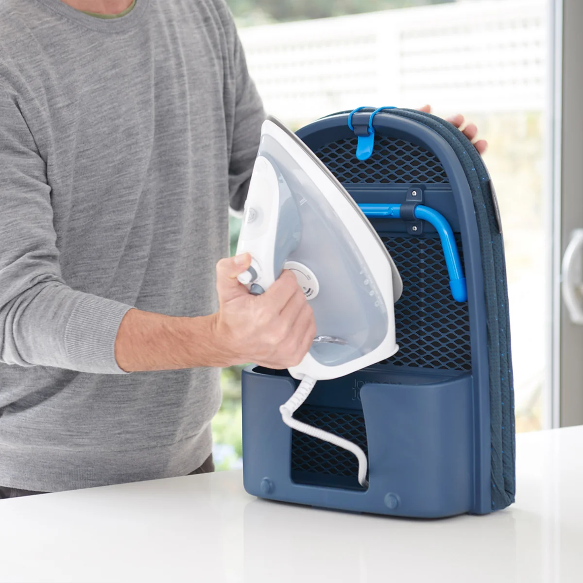 Das Tisch-Bügelbrett von Joseph Joseph ist in zwei Varianten erhältlich. Die Erste hat einen leicht zu wechselnden, perfekt sitzenden Bezug, der aus einer Deckschicht aus Baumwolle und einer dicken, gepolsterten Filzunterlage besteht.
