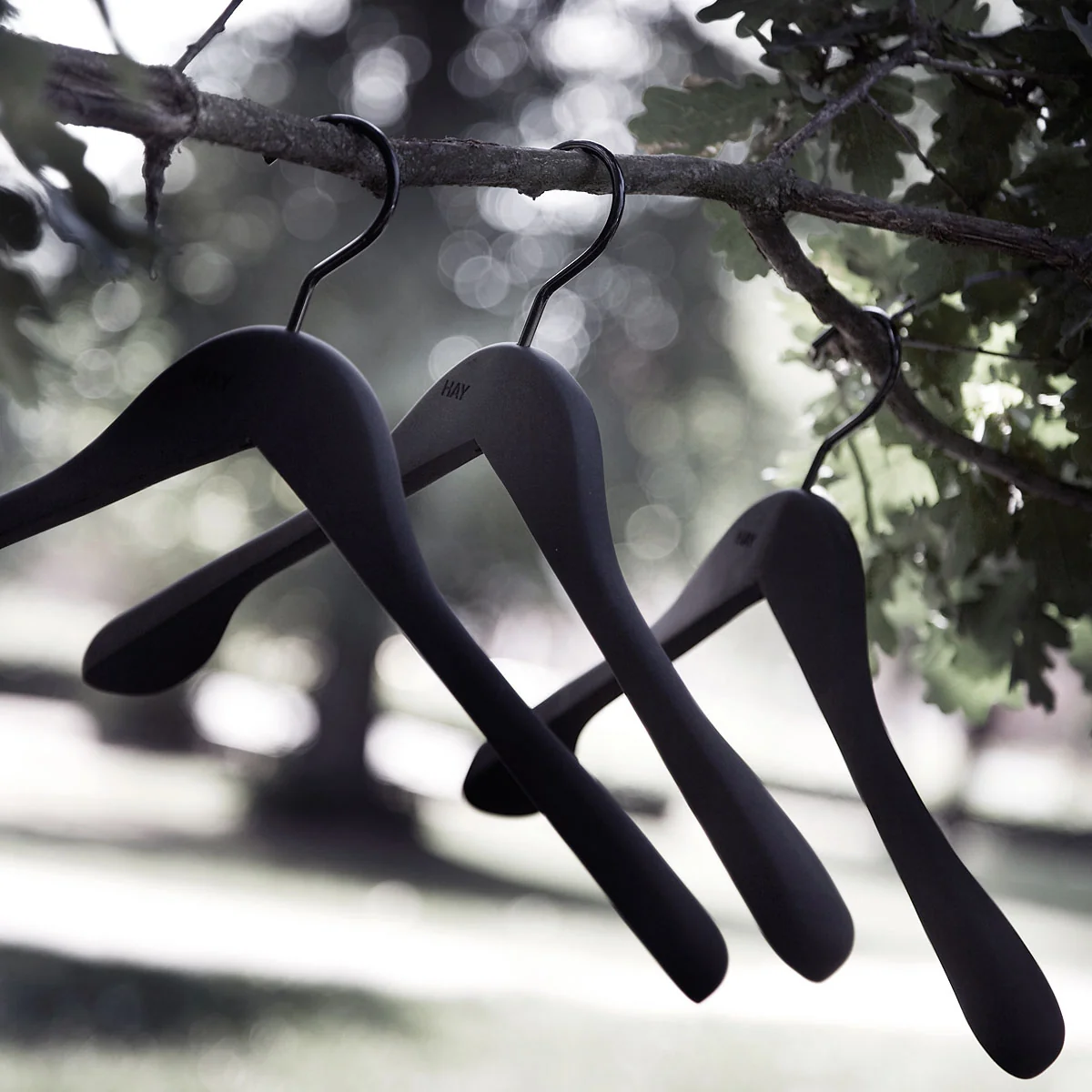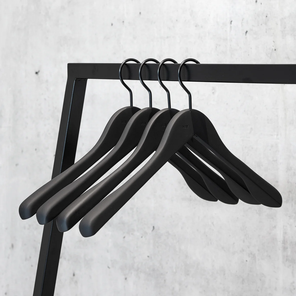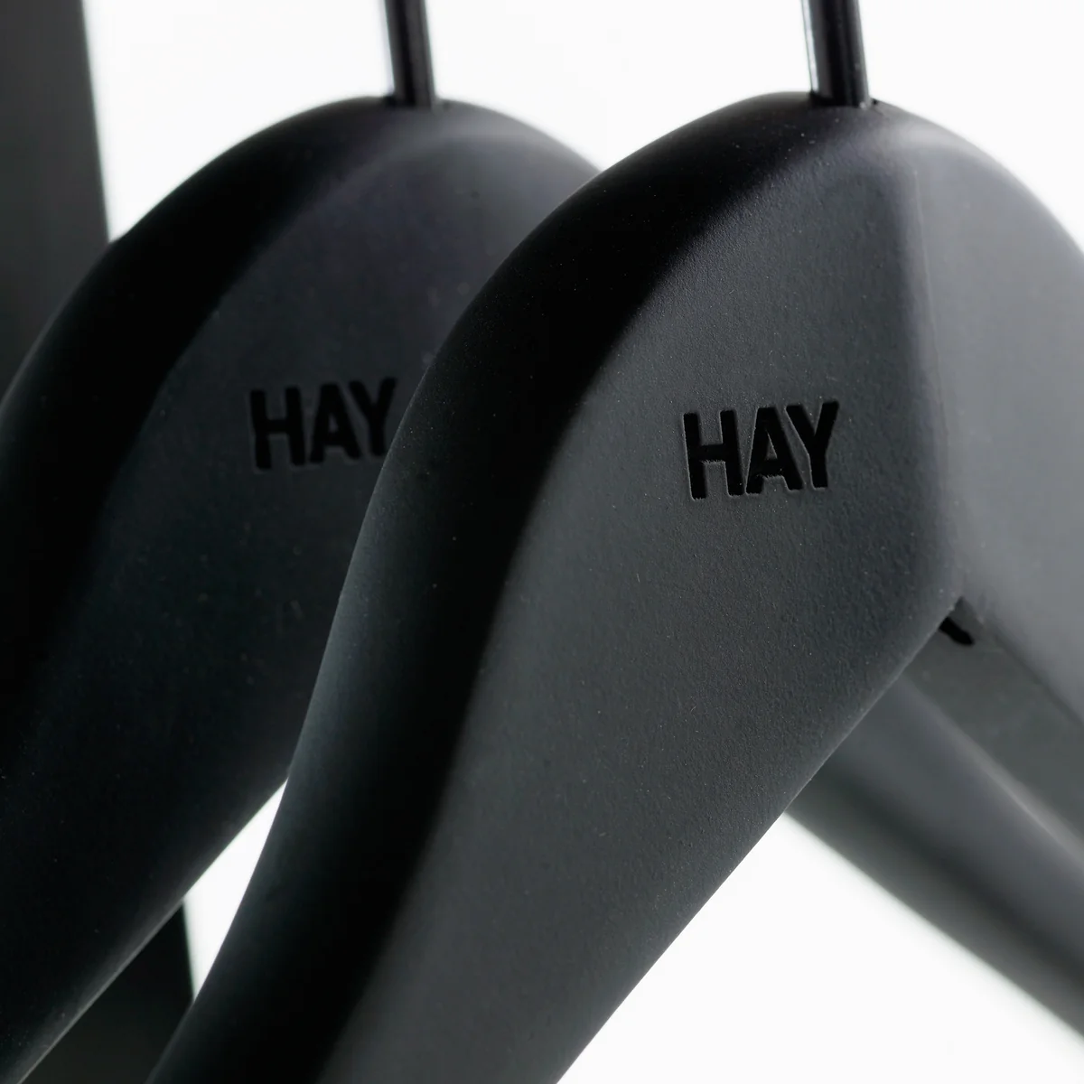 Die Kleiderbügel Soft Coat erscheinen mit dezentem HAY-Logo und sind wahlweise mit oder ohne Hosensteg.