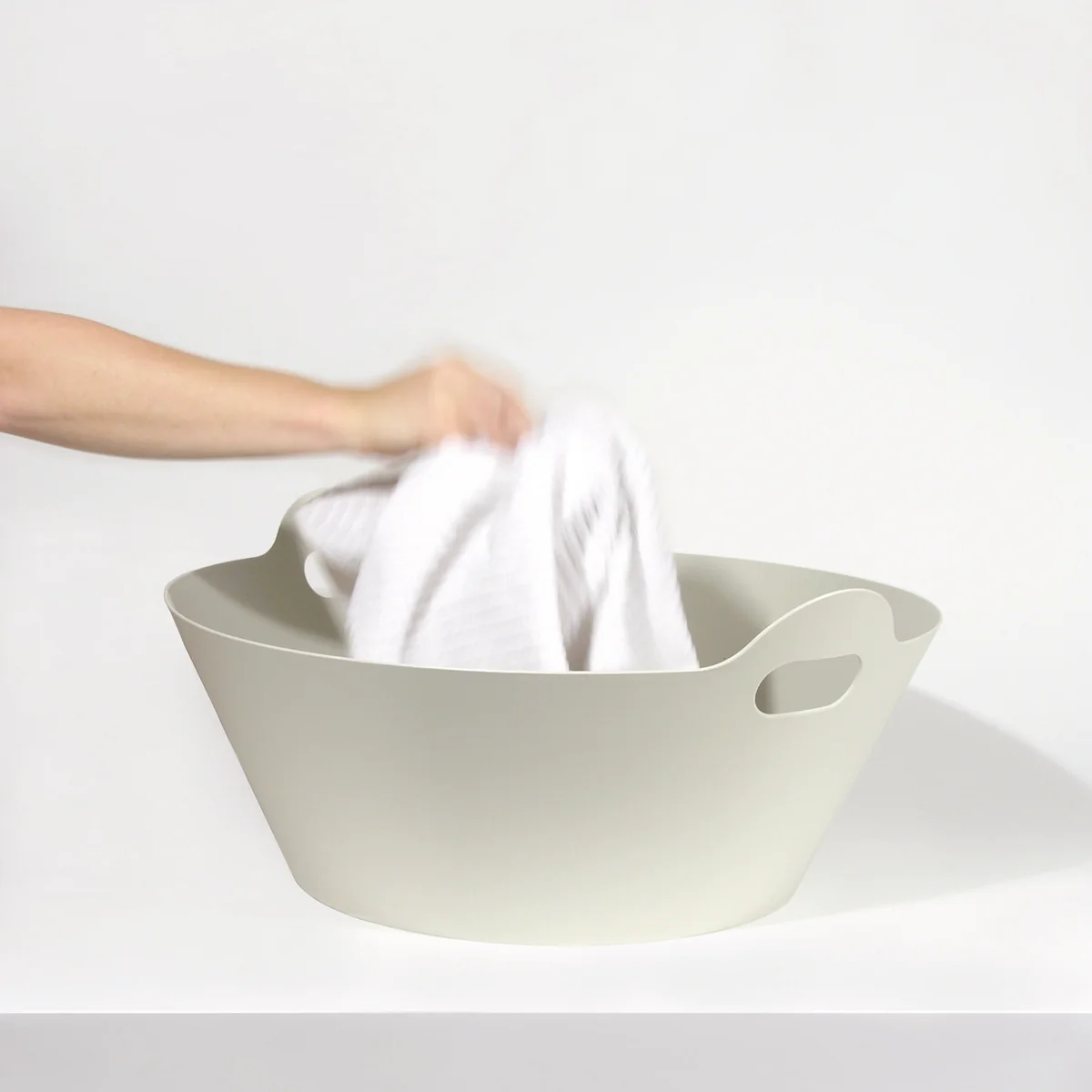 Ob als Wäschekorb, um die Wäsche vom Badezimmer zur Waschmaschine und zurück zum Kleiderschrank zu transportieren, als Aufbewahrungsort für Kissen, Decken, Spielzeug, Altpapier, Altglas und andere Haushaltsgegenstände oder sogar als Übertopf für große Zimmerpflanzen – sobald man den alltagstaugliche 2Hands Kübel von Authentics besitzt, wird man sich nie mehr von ihr trennen wollen.