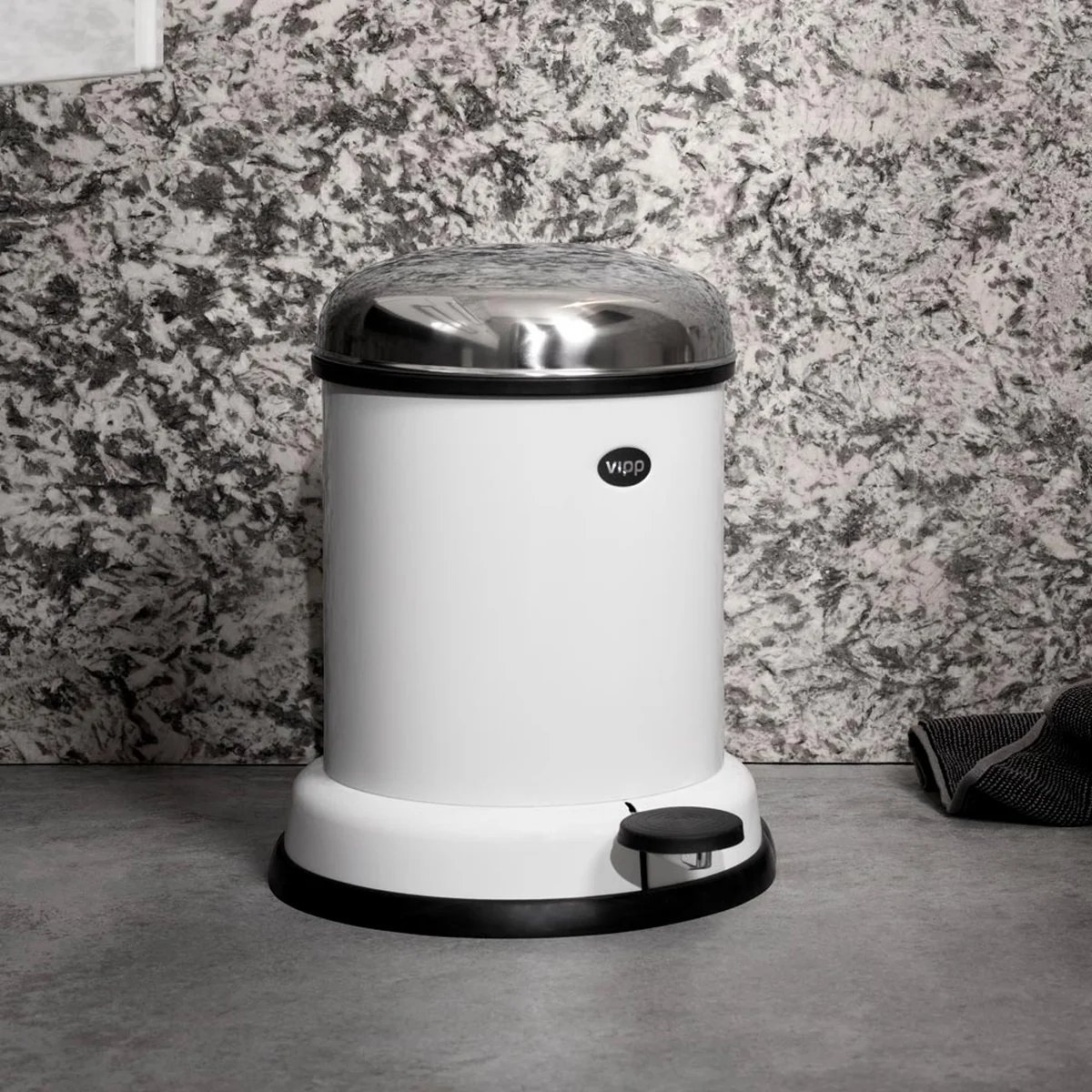 Ein besonderes Merkmal der Vipp Treteimer ist das Dämpfungssystem, das den Deckel leise und sanft schließen lässt. Der Treteimer ist Ideal für das Badezimmer aber auch sonst für jedes Zimmer, in dem ein schöner und funktionaler Treteimer gebraucht wird.
