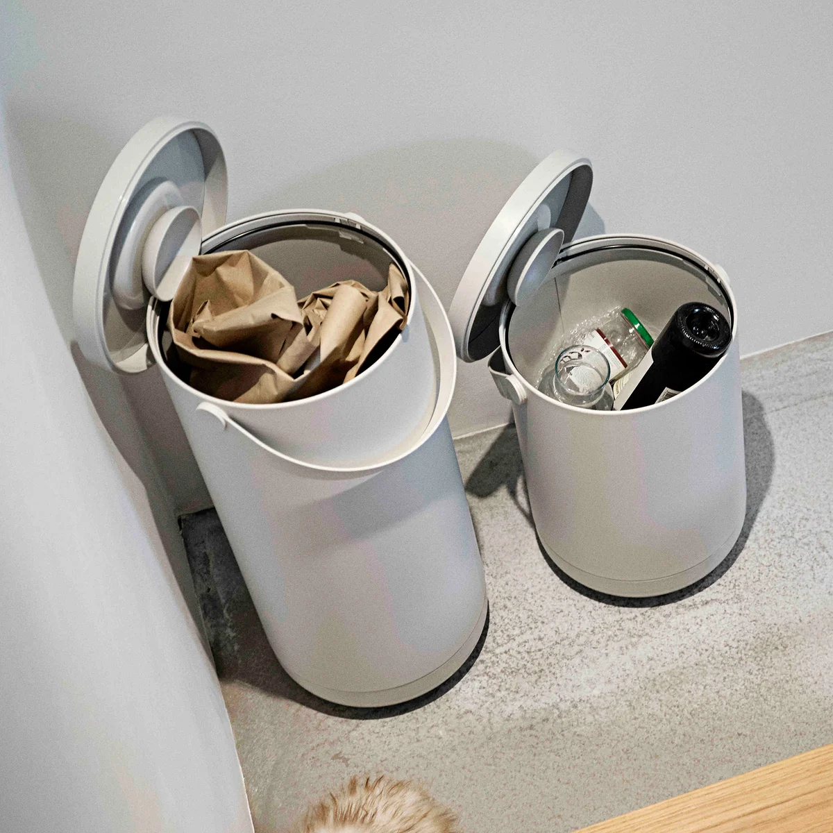 Der Circular Mülleimer des Herstellers Zone Denmark ist die perfekte, umweltfreundliche Möglichkeit Abfall zu sortieren. Das richtige Trennen von Resten senkt die Kohlenstoffemissionen und trägt somit zum Umweltschutz bei. Der Circular Bioabfallbehälter - Vorgänger des Mülleimers - wurde besonders gut angenommen, weshalb Zone Denmark elegante Behälter von 15 bis 35 Litern. Sie sind so konzipiert, dass sie nicht zwangsläufig unter der Spüle versteckt werden müssen. Circular kann wunderbar in der Küche oder im Büro platziert werden. Die Mülleimer sind überaus Benutzerfreundlich: Sie lassen sich leicht reinigen und der Deckel kann simpel abgenommen werden. Zudem verfügen sie über einen Griff, wodurch sie sich problemlos transportieren lassen. Der doppelte Aufhänger kann hochgeklappt werden, sodass sich das Auswechseln des Müllbeutels erleichtert.
