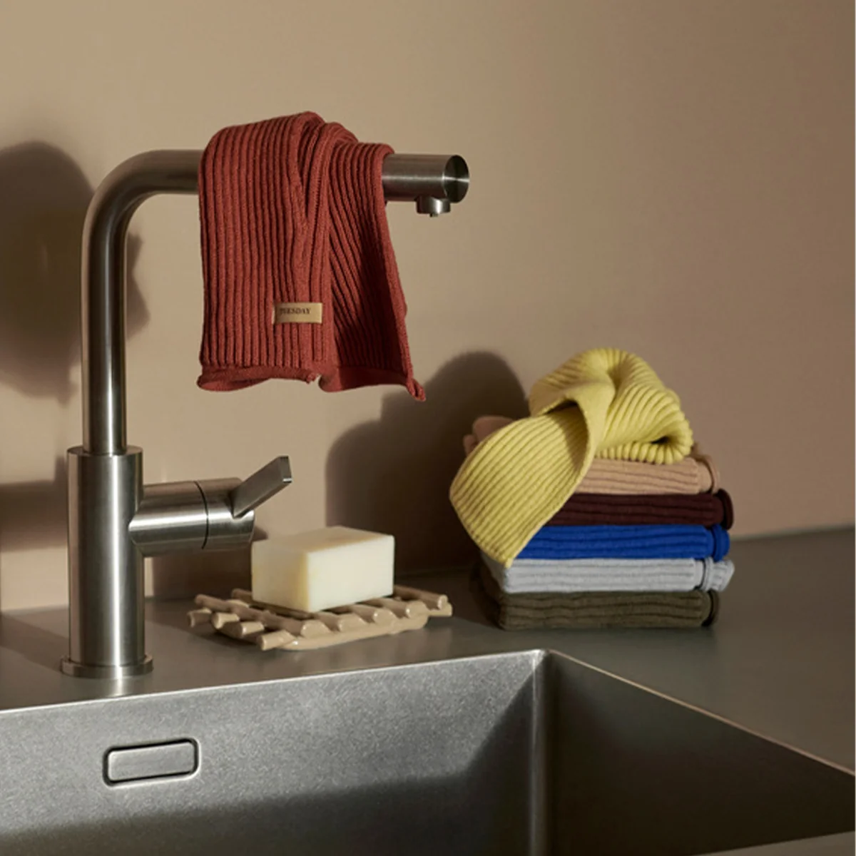 Die Day Spültücher des dänischen Herstellers Ferm Living eigenen sich hervorragend um jeden Tag der Woche zu zelebrieren! Das 7er-Set ist jeweils mit einem eingewebten Etikett versehen, welches den dazugehörigen Wochentag kennzeichnet. Die fein gerippt gestrickten, organischen, GOTS-zertifizierten Baumwollgarntücher sind eine wunderbare Alternative zu den klassischen Geschirrtüchern. Die Day Spültücher verleihen jeder Küche einen stilvollen Touch. Eignen sich hervorragend als Geschenk. Bei Bedarf bei 40° waschen.