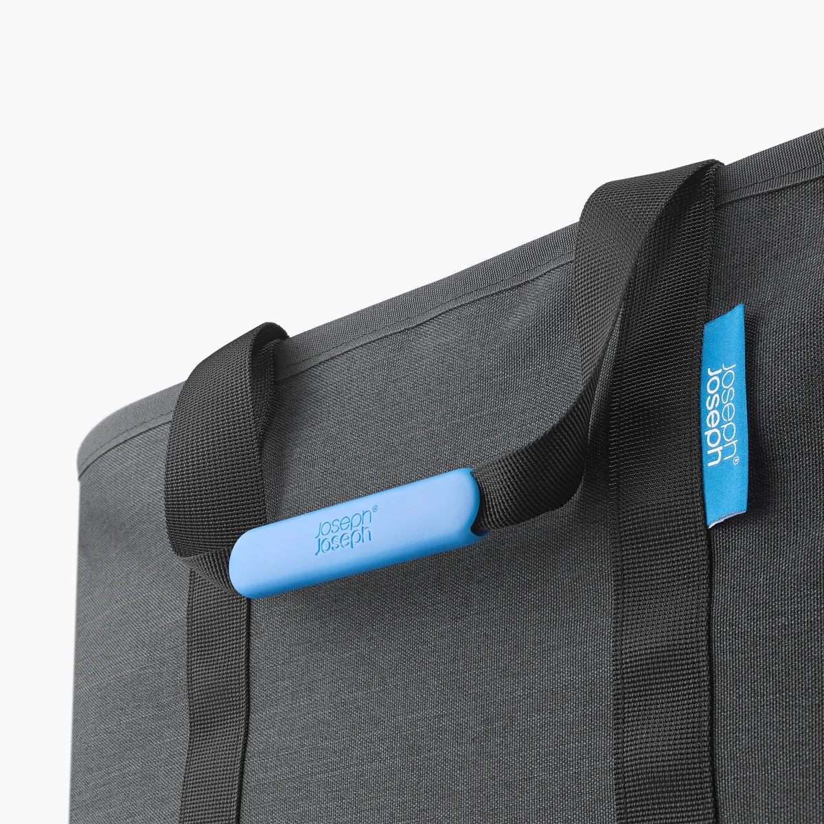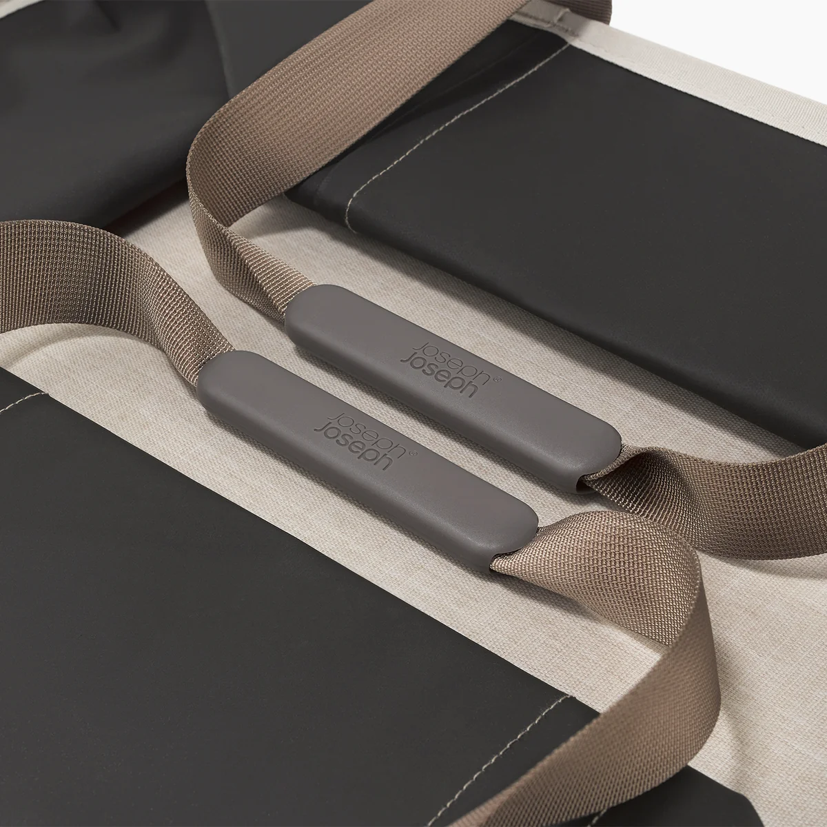 Der Hold-All™ Faltbare Wäschekorb des Herstellers Joseph Joseph ist überaus flexibel. Der faltbare Wäschekorb kann bei Nicht-Benutzung ganz simpel flach gefaltet und verstaut werden. Die starken Wäschegriffe ermöglichen, dass Wäsche optimal transportiert werden kann. Der Innenbereich des Korbs ist feuchtigkeitsbeständig und kann leicht gereinigt werden. Hold-All™ kann je nach Größe 35 / 45 L und maximal 9 / 11 Kg tragen.