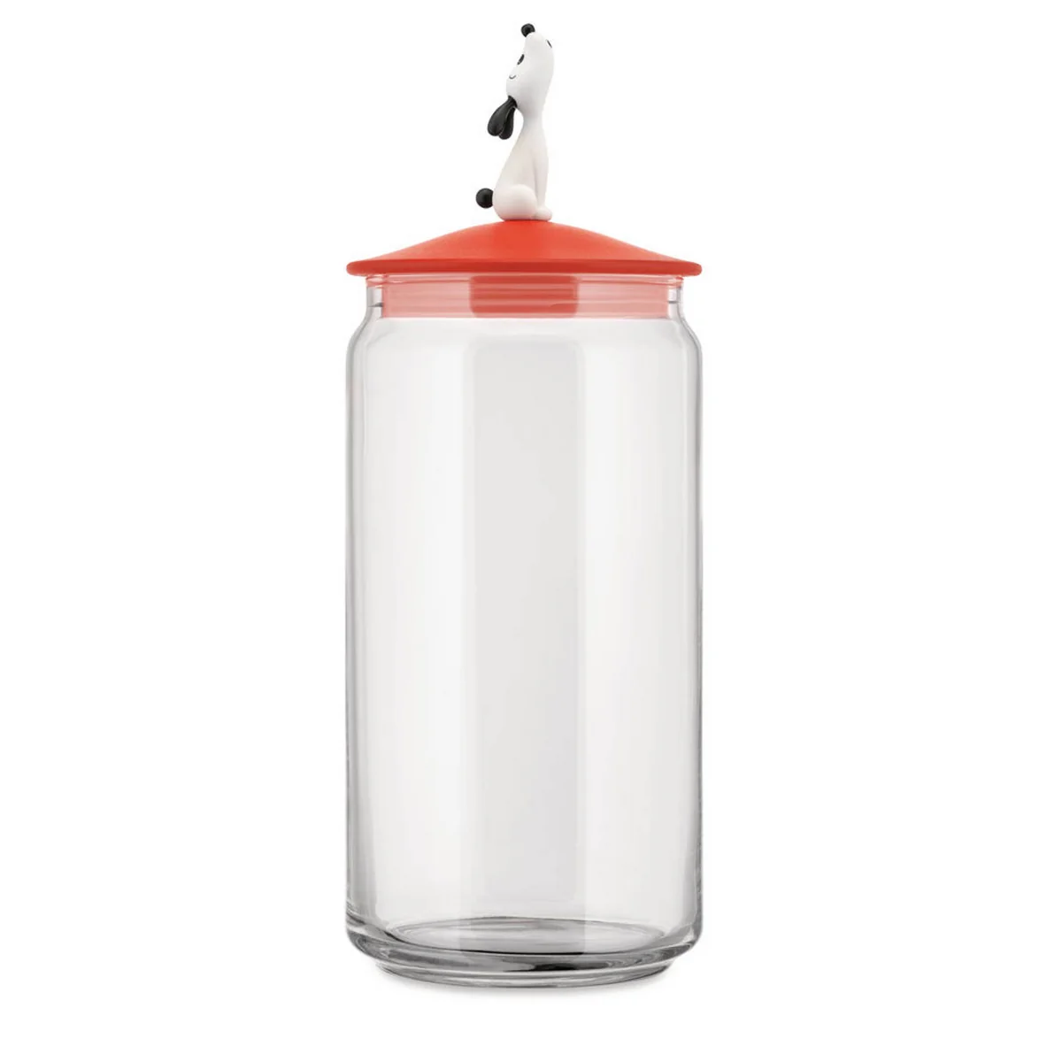 Der Lulà Behälter für Hundefutter von Alessi widmet sich der Welt der Haustiere und verleiht einem schlichten Alltagsgegenstand ein spielerisches, emotionales Merkmal: Ein kleiner Hund auf dem Deckel, der gleichzeitig als Griff dient.