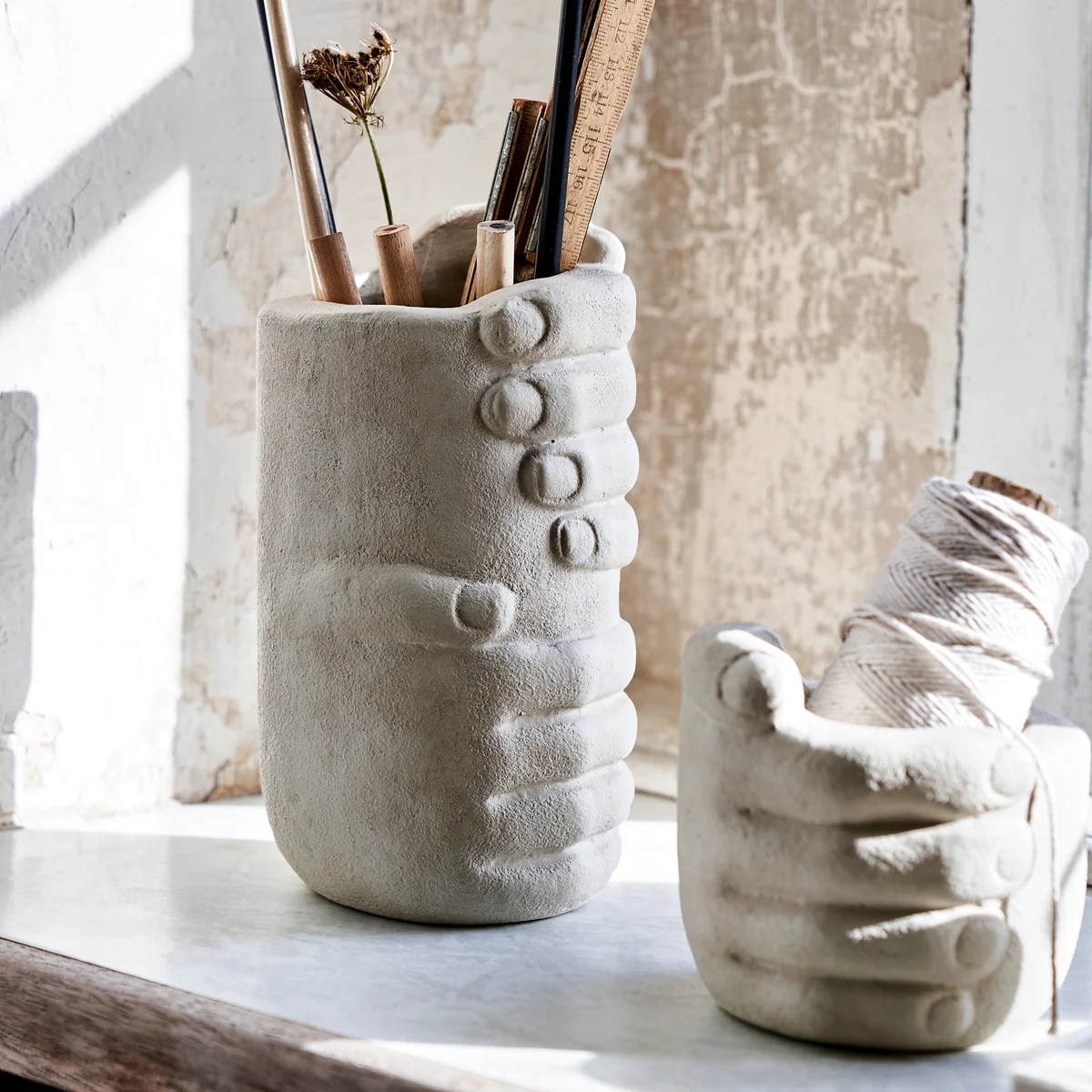 Die Handy Aufbewahrung aus dem Hause House Doctor umfasst wortwörtlich allerlei Bürobedarf. Von Büroklammern über Gummibänder, Radiergummis, Klebeband bis hin zu Stiften, Handy hat alles parat! Die Aufbewahrung wird aus Steingut mit einer Farbbeschichtung auf Wasserbasis gefertigt und bietet einen überaus modernen, coolen Touch fürs heimische Office.
