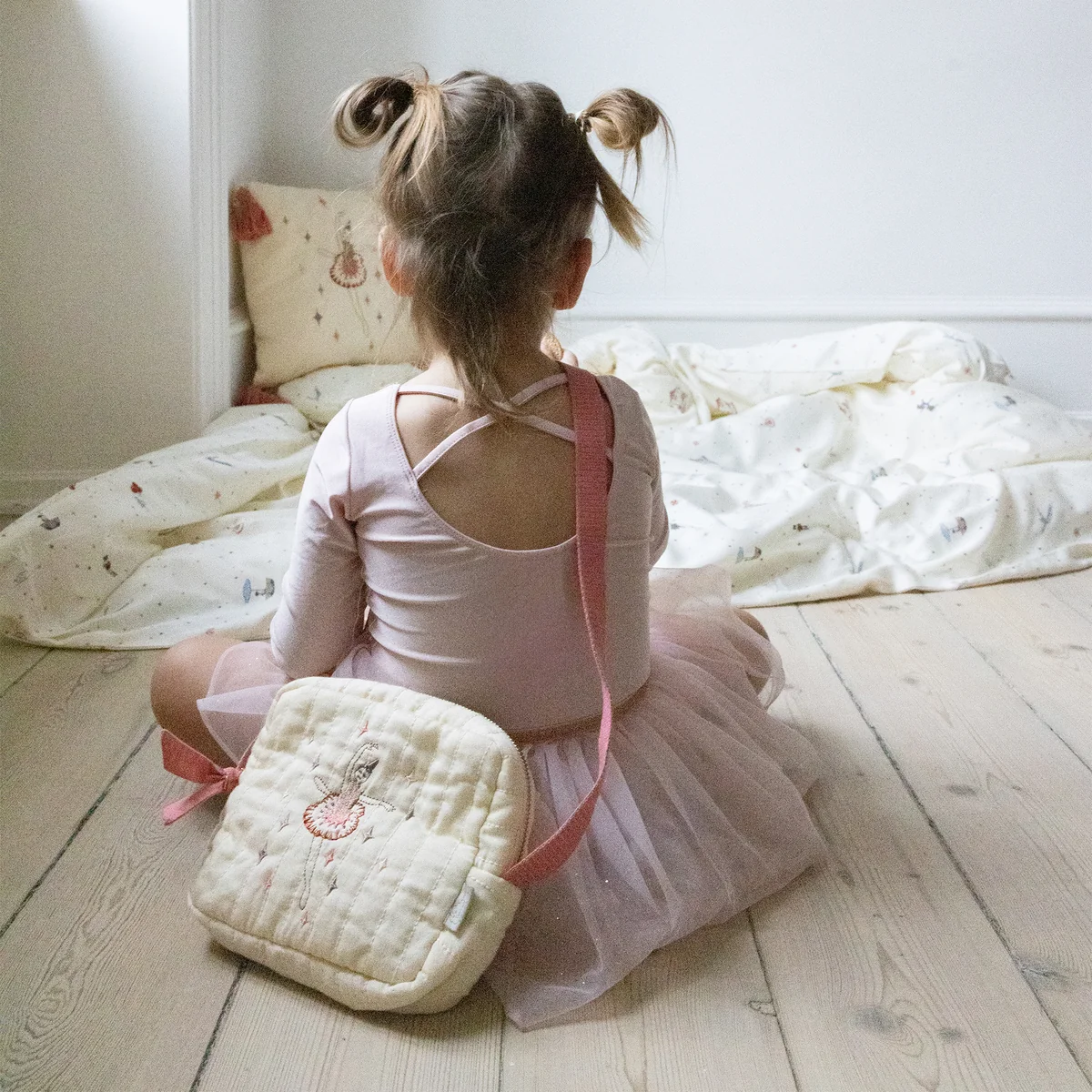 Gefertigt aus 100 % Bio-Baumwolle und gestaltet mit den charakteristischen, sanften Prints der Marke, verbindet die Umhängetasche nachhaltige Materialien mit zeitlosem skandinavischem Design. Der praktische Reißverschluss sorgt dafür, dass alles sicher verstaut bleibt, während der verstellbare Schulterriemen die perfekte Passform für Kinder verschiedener Altersstufen möglich macht.