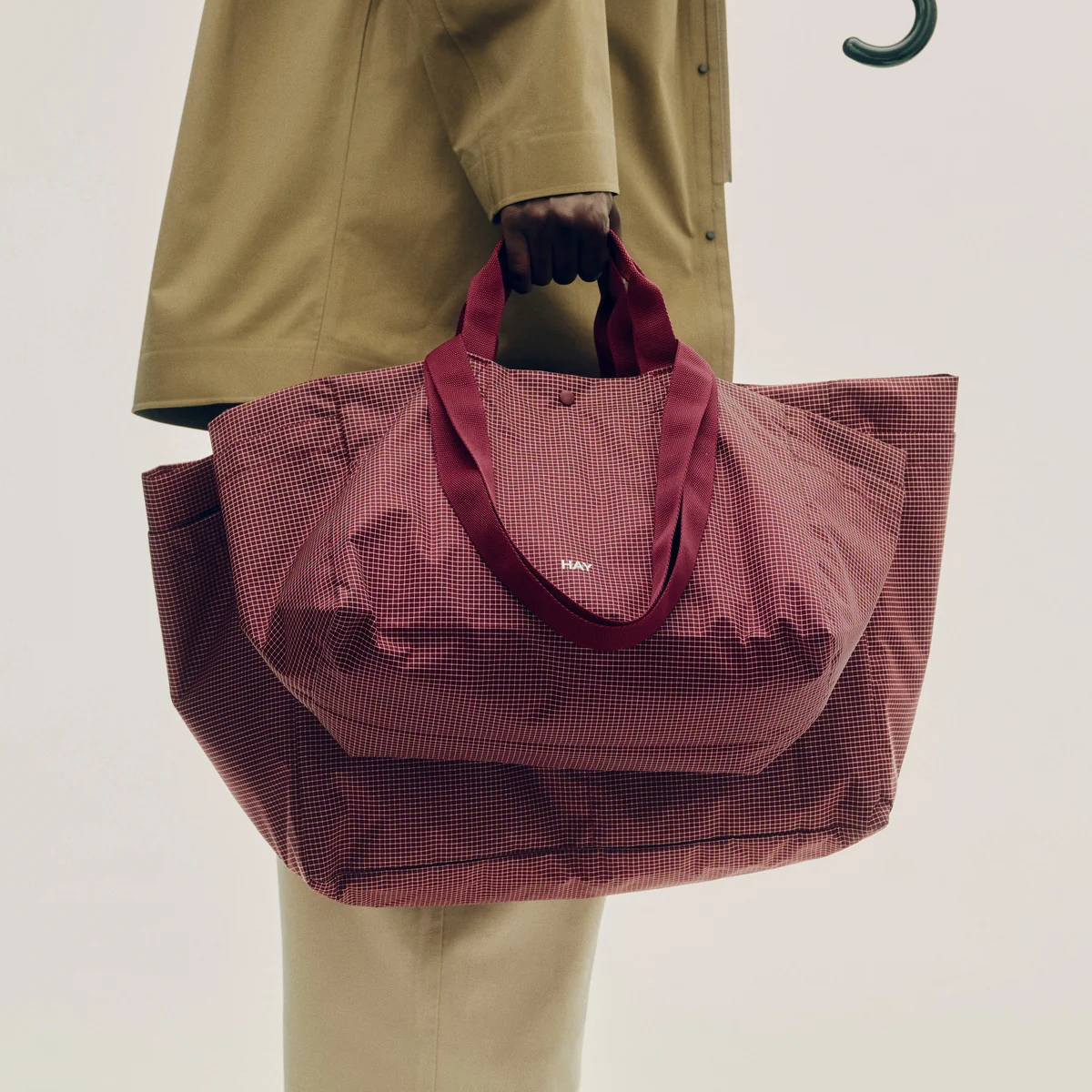 Die Grid Weekend Bag von HAY kombiniert minimalistisches Design mit hoher Alltagstauglichkeit. Als großzügige Carryall-Tasche eignet sie sich gleichermaßen für Schule, Einkauf, Sport oder Wochenendtrips. Gefertigt aus einem robusten Materialmix aus 79 % recyceltem Nylon und 21 % Polyester mit wasserabweisendem Finish, schützt sie den Inhalt zuverlässig und bleibt dabei angenehm leicht.