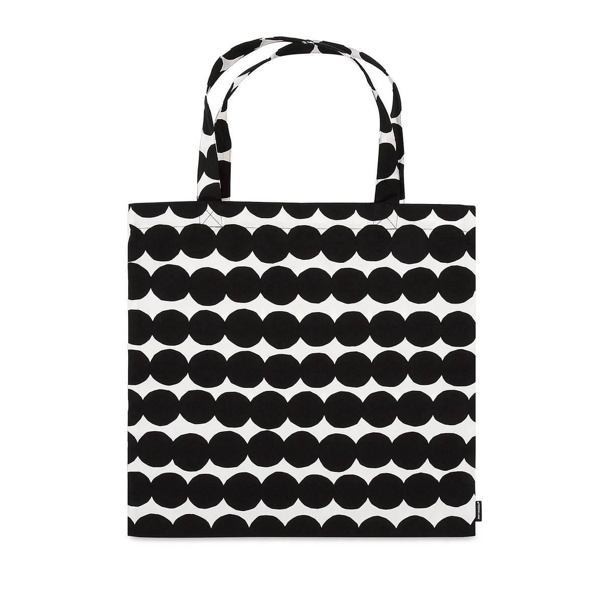 Die Räsymatto Tasche von Marimekko wird von dem markanten Punkte-Muster verziert, welches von Maija Louekari entworfen wurde. Das charmante Schwarz-Weiß-Muster wird jeden Einkauf versüßen und ist ein echter Hingucker.
