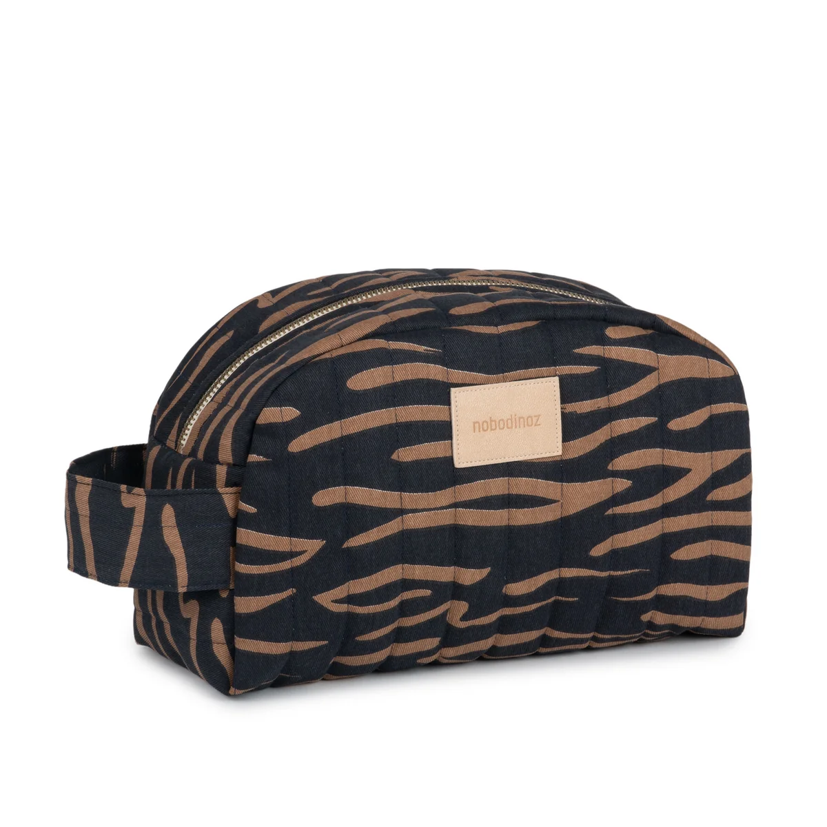 Die Hyde Park Kosmetiktasche des Herstellers Nobodinoz sorgt auf hübsche Weise für Ordnung. Die Außenseite wird aus bedruckter und gesteppter Bio-Baumwolle gefertigt. Das Innefutter ist wasserdicht, sodass Hygieneartikel und Baby-Accessoires problemlos gelagert werden können. Der kleine seitliche Griff ermöglicht simples Tragen der Tasche. Die Kosmetiktasche wird mit einem Reißverschluss verschlossen. Hergestellt in Barcelona.