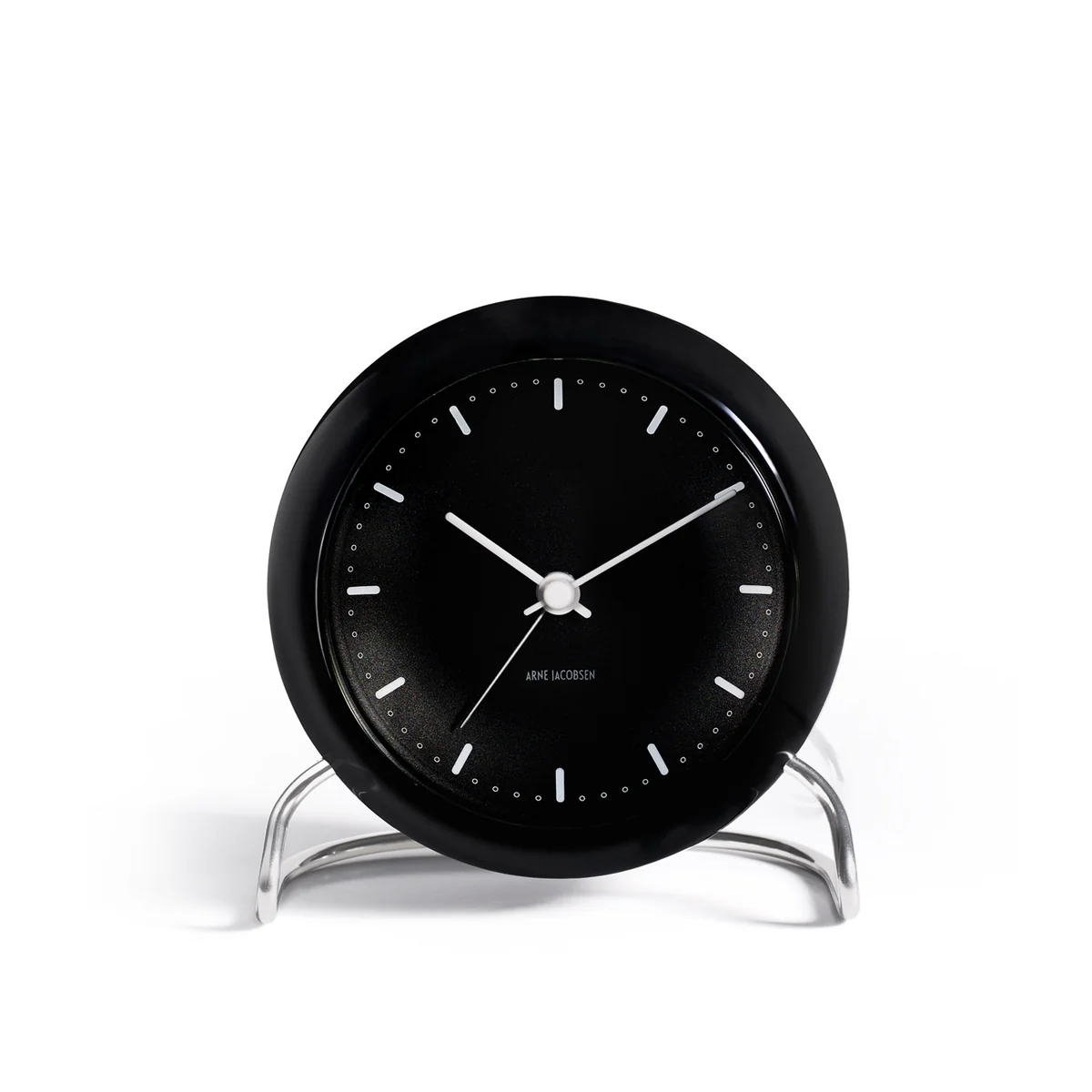 Arne Jacobsen entwirft in den 1950er und 1960er Jahren viele Gebäude für den Kopenhagener Vorort Rødovre. Das Rathaus von 1956 zeigt, wie sehr Jacobsen in dieser Zeit von internationalen Strömungen inspiriert war, und es ist eines seiner konsequentesten durchgeplanten Gebäude. Er entwirft sämtliche Details selbst, darunter auch die Rathaus-Uhr, und richtet das Gebäude mit eigenen Möbelserien ein. Nach dem Vorbild dieser Uhr entstand das ikonische Ziffernblatt des City Hall Weckers.