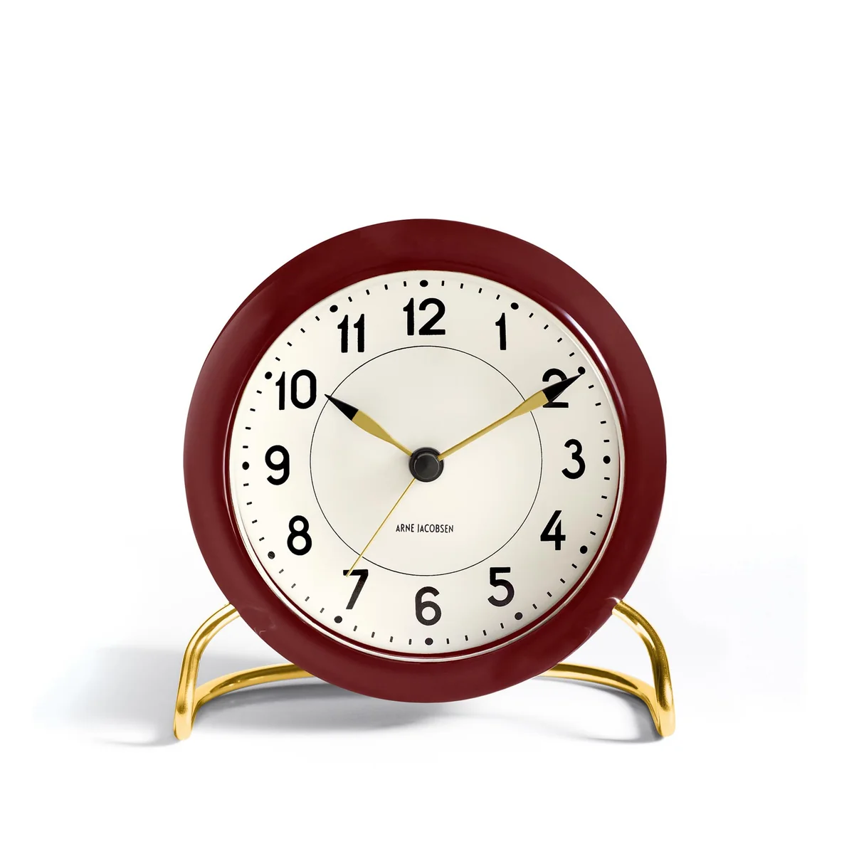 Zunächst zierte das Ziffernblatt "Roman" die Front der Tischuhr von 1939. Dieses Ziffernblatt mit römischen Zahlen setzte Arne Jabosen später u.a. auch für die Rathaus-Uhr in Aarhus ein. 1941 wurde eine überarbeitete Variante der Tischuhr mit arabischen Zahlen und neuen Zeigern angeboten, die den Namen "Station" erhielt.