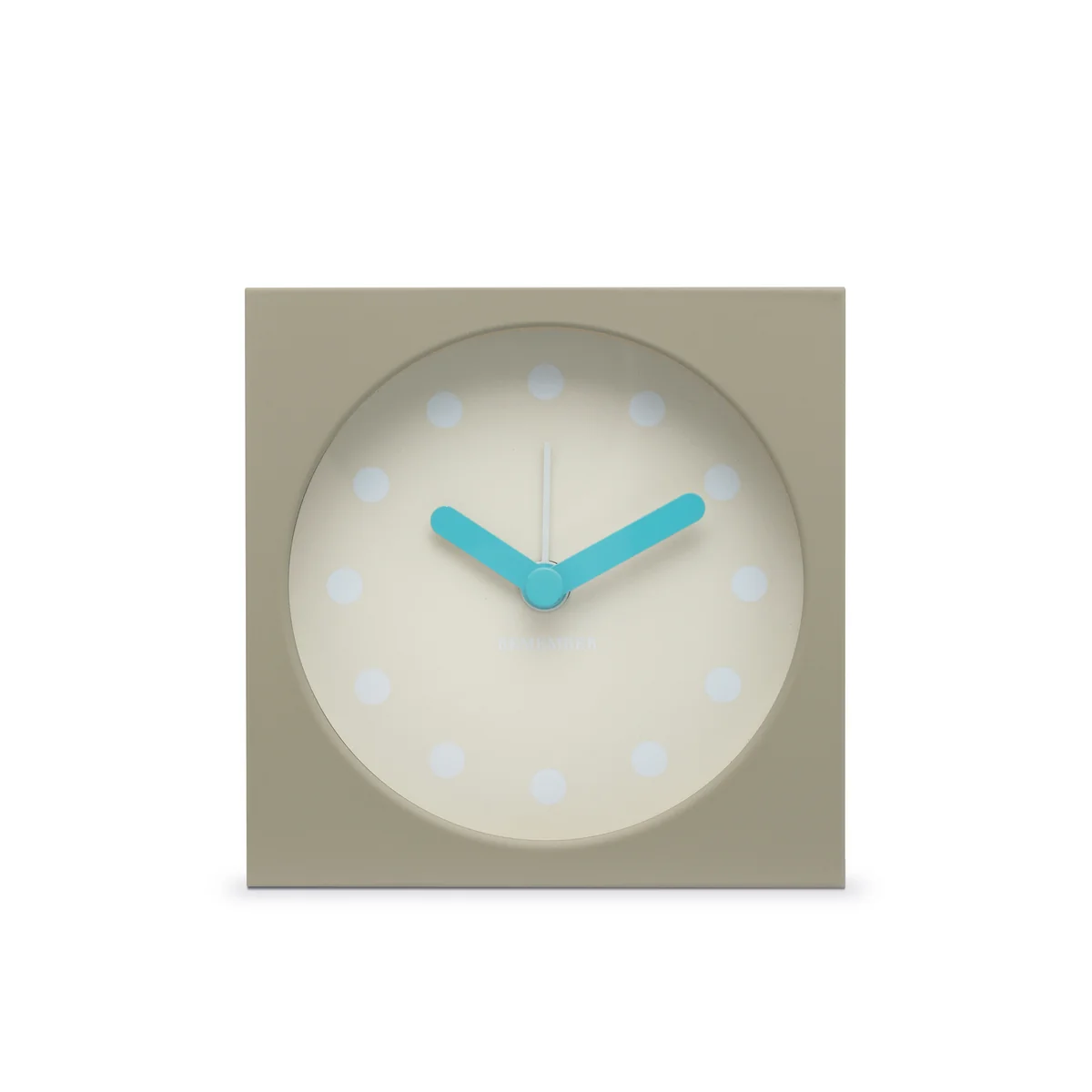 Die Tischuhr des Labels Remember besticht mit seinen klaren Linien, seinem minimalistischen Ziffernblatt und seinem bunten Zeiger. Die zweifarbige Tischuhr ist ein großartiger Hingucker - Ob im Badezimmer, der Küche oder ganz klassisch im Schlafzimmer. Das lautlose Quarz-Uhrwerk sorgt für auf dem Nachttisch für ruhige Nächte. Die Tischuhr mit Weckerfunktion wird aus recyceltem Kunststoff gefertigt. Die Bedienung der minimalistischen Tischuhr ist überaus simpel: Auf der Rückseite befindet sich ein kleiner Schalter, welcher das Ein- und Ausschalten des Weckers ermöglicht. Ebenso befindet sich auf der Rückseite eine Klappe zum Einsetzen der Batterie.