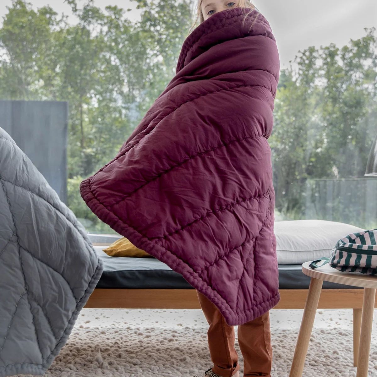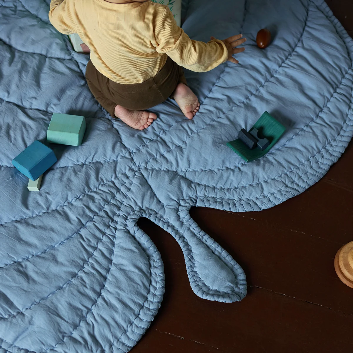 Die Leaf Spieldecke von Nofred ist eine organisch geformte Kinderdecke aus Baumwolle, die sowohl auf dem Boden als auch über einem Sofa oder am Ende eines Bettes einen schönen Platz findet. In Form eines Blattes ist die Decke sowohl dekorativ als auch funktionell. Babys können in die Decke gewickelt werden und Kleinkinder finden auf der Decke einen weichen und komfortablen Platz zum Spielen und Liegen. Auch der Mittagsschlaf lässt sich auf der Decke angenehm gestalten.