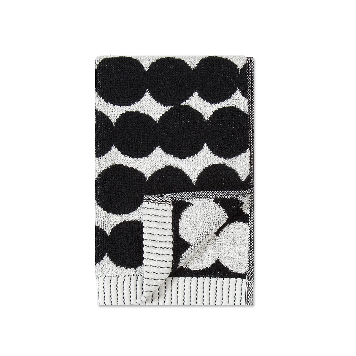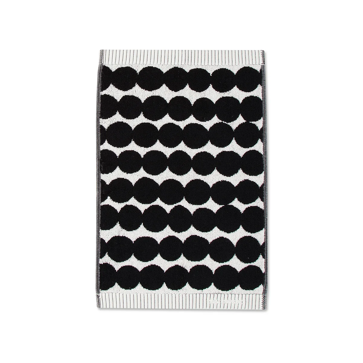 Das Räsymatto Gästehandtuch von Marimekko ist mit seinem gepunkteten Muster eine schöne und zugleich zeitlose Dekoration in jedem Badezimmer. Das Besondere: Die Farben auf der Vorderseite sind auf der Rückseite umgekehrt zu sehen. Dieser Positiv-Negativ-Effekt macht das Gästetuch zu einem besonderen Badtextil, mit typischem Marimekko-Charme.