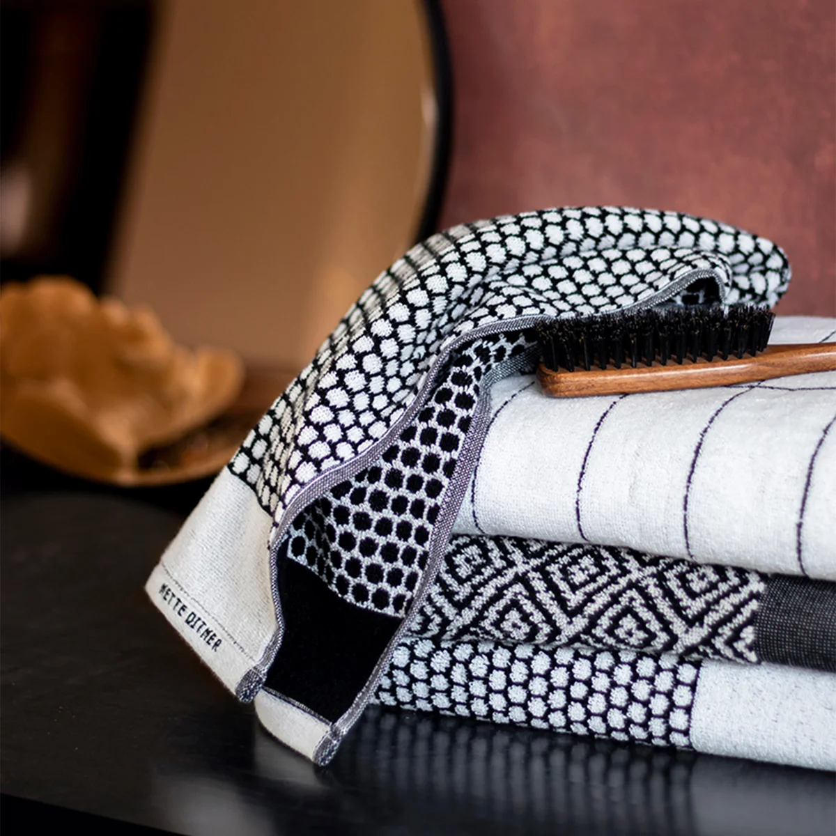 Das Tile Badetuch von Mette Ditmer überzeugt mit seinen klaren, dünnen Linien. Ditmers Design erinnert an das klassische Bild von Boden- oder Wandfliesen. Aufgrund seines außergewöhnlichen Motivs findet das Badetuch insbesondere in schlichten Bädern ein ideales Zuhause. Das Produkt besteht aus 100% OEKO-TEX® zertifizierter Baumwolle, weshalb das Tuch auch noch nach vielen Waschgängen weich bleibt. Das Tile Badetuch kann bei 60 Grad gewaschen werden.