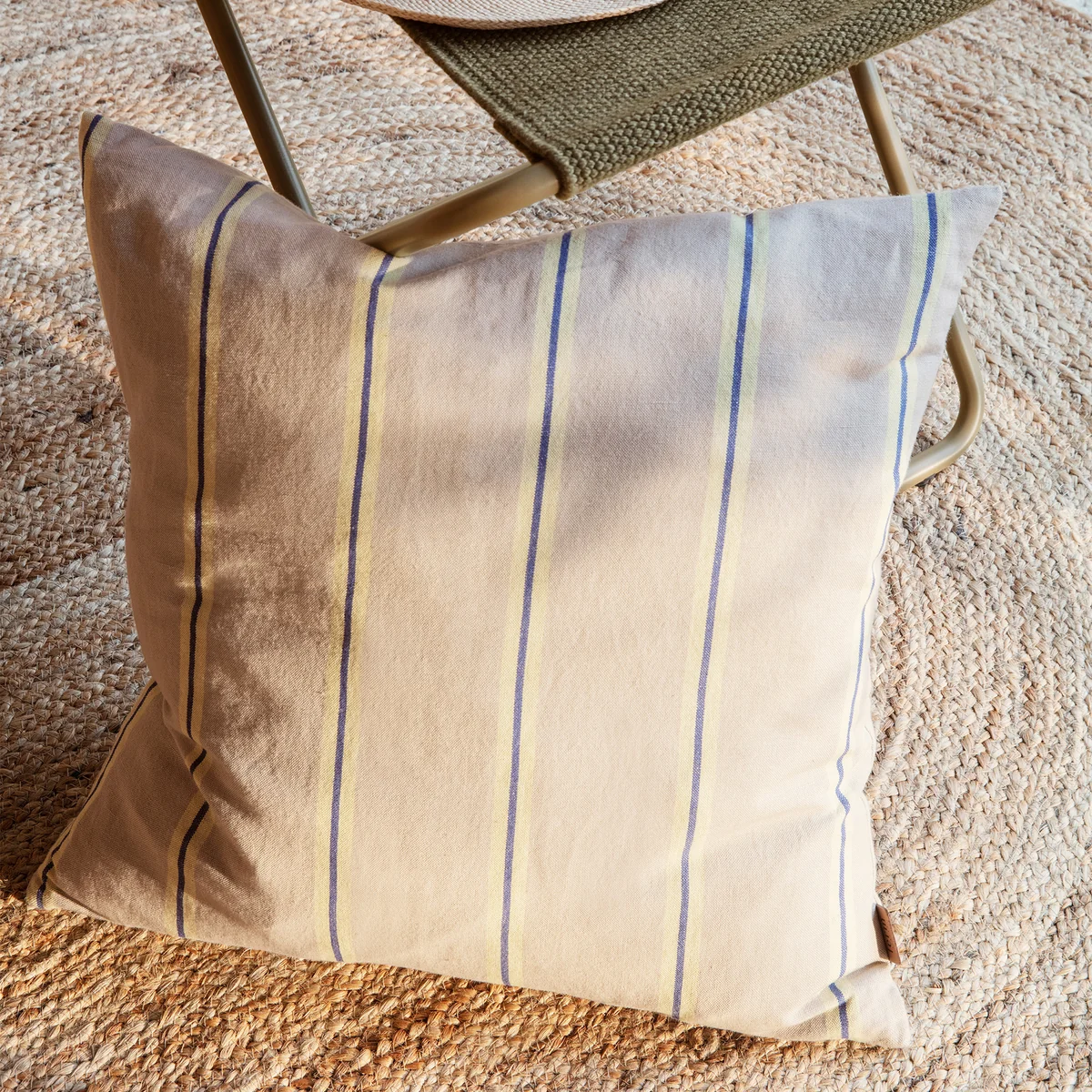 Ferm Living vereint mit den Grand Kissen Tradition und Moderne. In fröhlichen Mustern und Farbkombinationen dekorieren sie den Raum und verleihen ihrer Umgebung einen besonderen Charme. Grand eignet sich unter anderem toll für das heimische Sofa im Wohnzimmer, eine Sitzbank oder für die extra Portion Gemütlichkeit auf einem Stuhl. Hergestellt wird das Kissen aus 50 % Baumwolle und 50 % Leinen und verfügt über eine Füllung aus Federn und Daunen, die es besonders komfortabel machen.