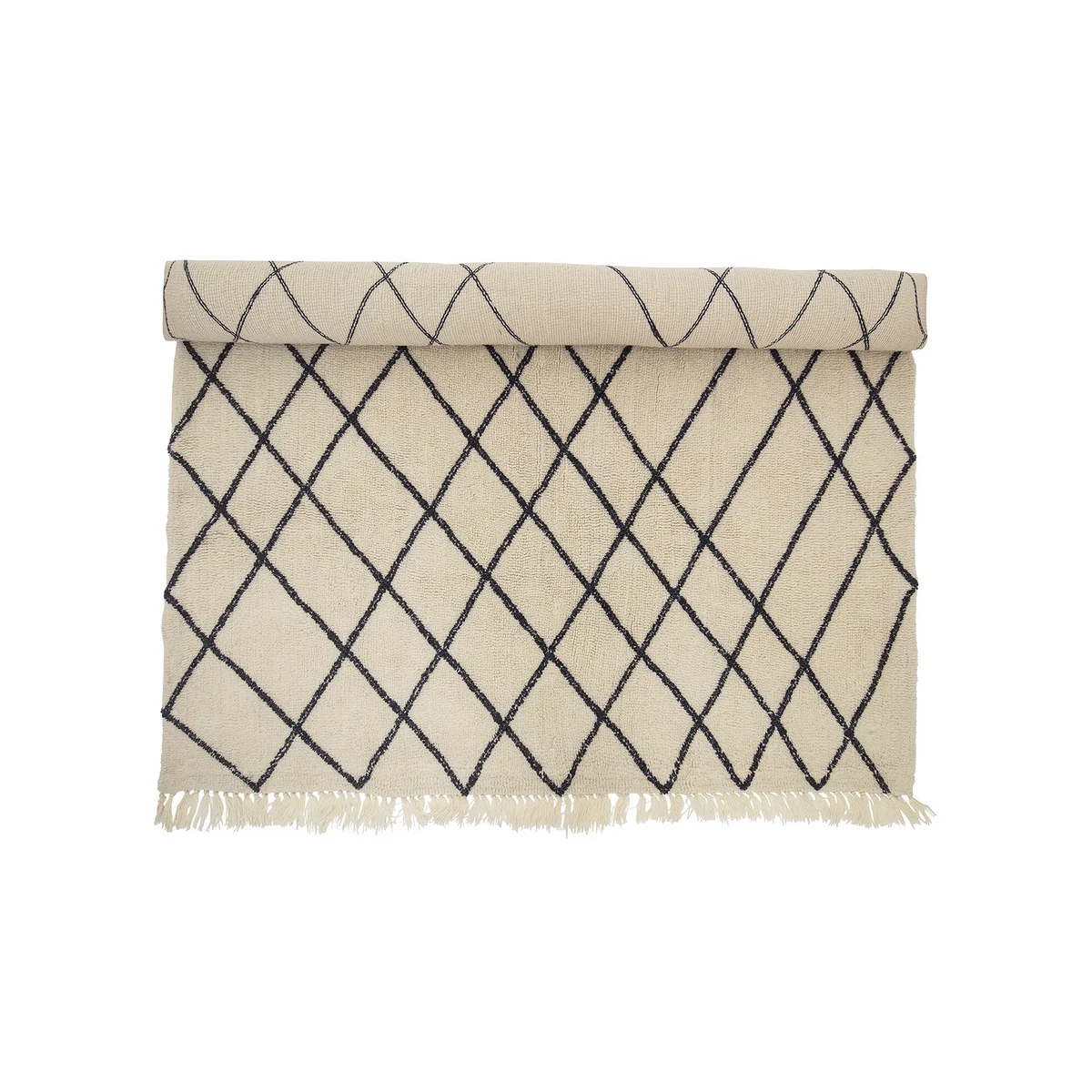 Bloomingville - Wollteppich 300 x 200 cm, Rautenmuster, beige/ schwarz