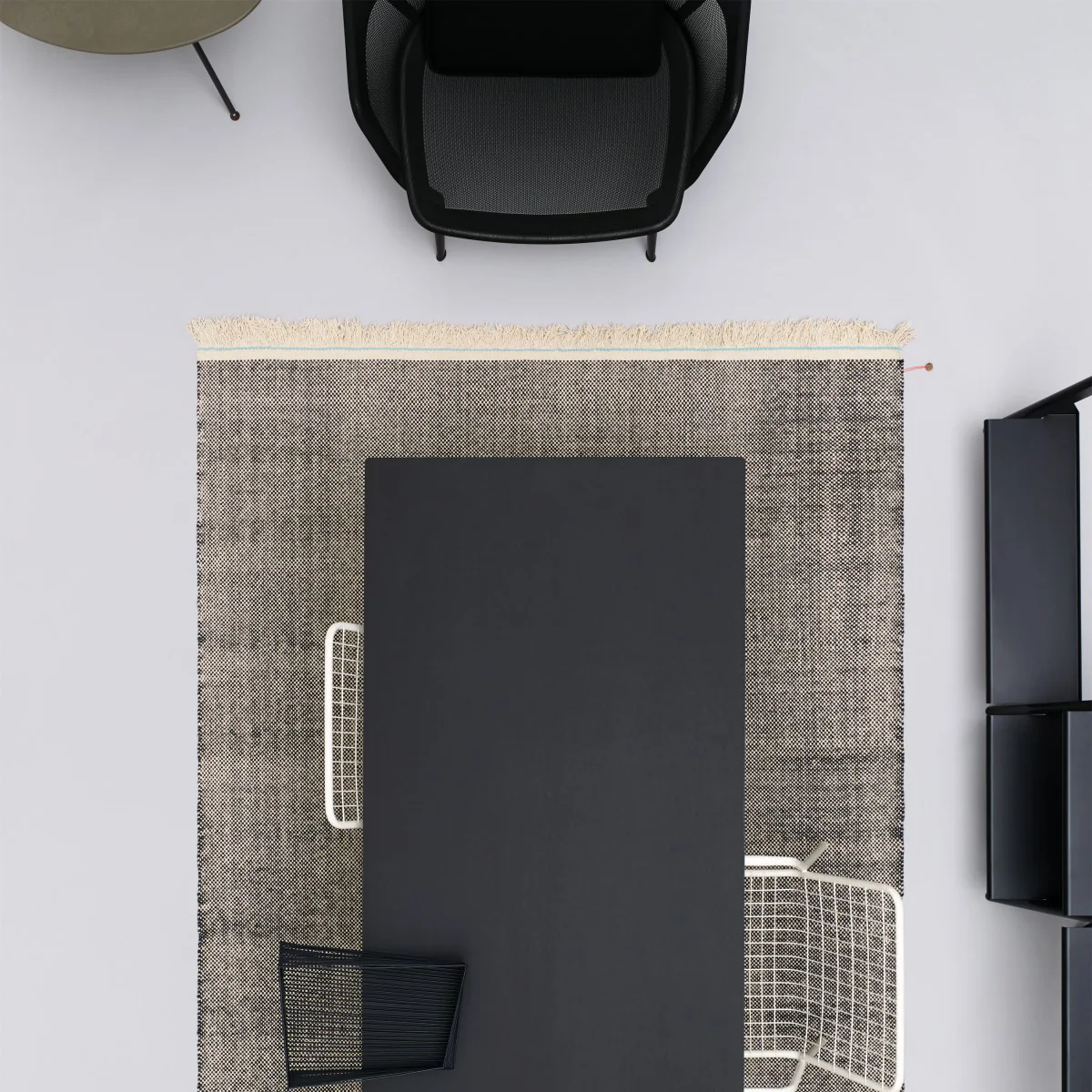 Der Duotone Teppich von Kvadrat überzeugt durch seine Einfachheit. Der Duotone besteht aus nur zwei Farben. Die Mischung aus beiden lässt einen ausdrucksstarken Teppich entstehen.