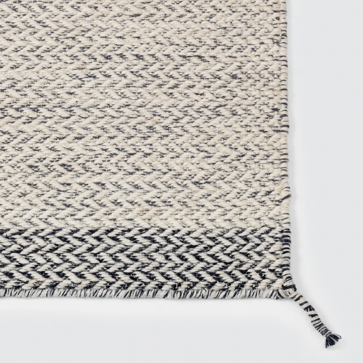 Ply ist ein simpler und eleganter Teppich, der die traditionelle Webkunst verkörpert. Die einzigartige Struktur und das fast dreidimensionale Zick-Zack-Muster erzeugen ein perfektes Gleichgewicht zwischen Ruhe und Auffälligkeit. Hergestellt aus 100% hochwertiger Neuseelandwolle mit kleinen Quasten als abschließendes Detail, transportiert der Teppich unsere skandinavische Kultur in die Zukunft. Margrethe Odgaard