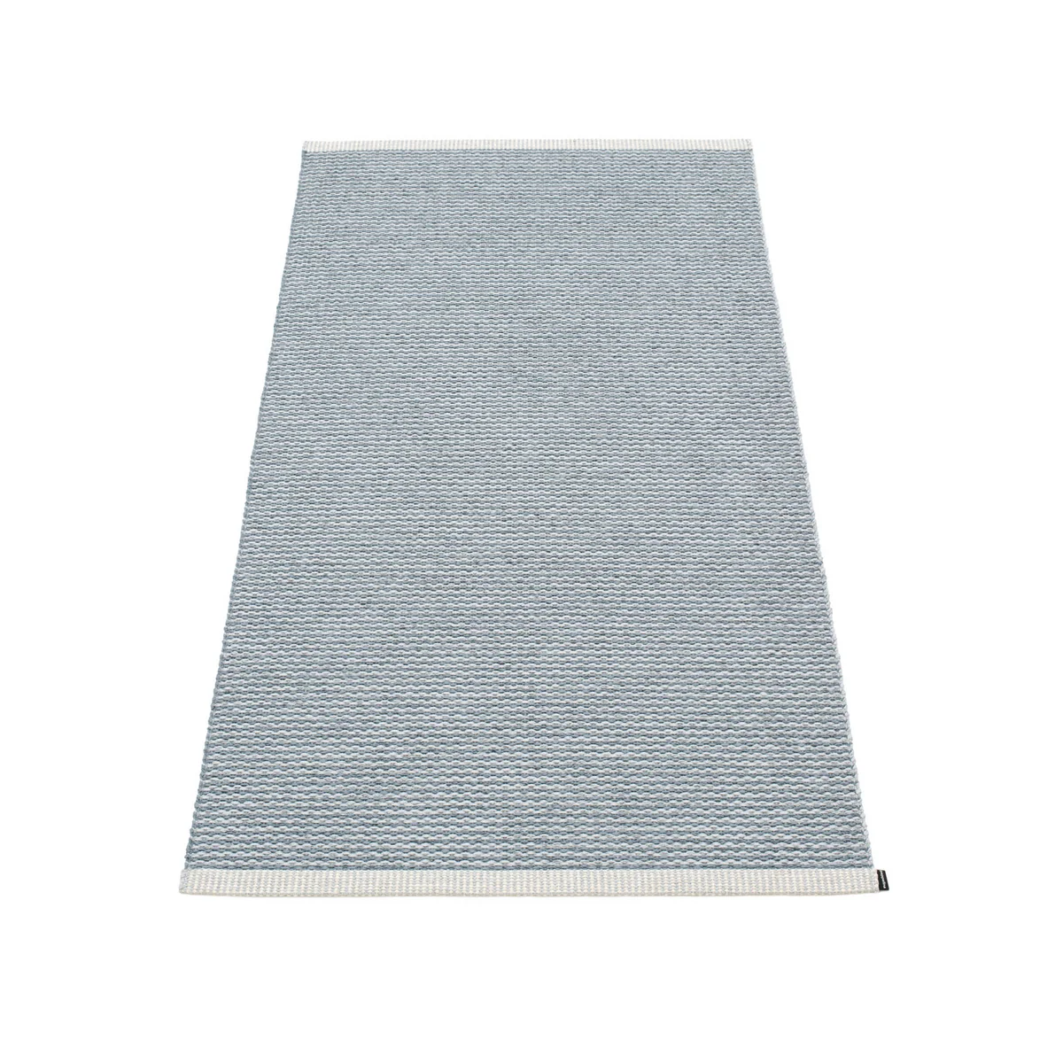 Hergestellt wird der flexible und wandelbare Teppich aus PVC und Kettfäden aus Polyester. Gewebt wird der Stuhl in einem traditionsreichen Unternehmen in Schweden auf klassischen Webstühlen. Eine dekorative, umgenähte Webkante mit einem dezenten, schwarzen Etikett rundet den Look des robusten und wetterbeständigen Teppichs ab.