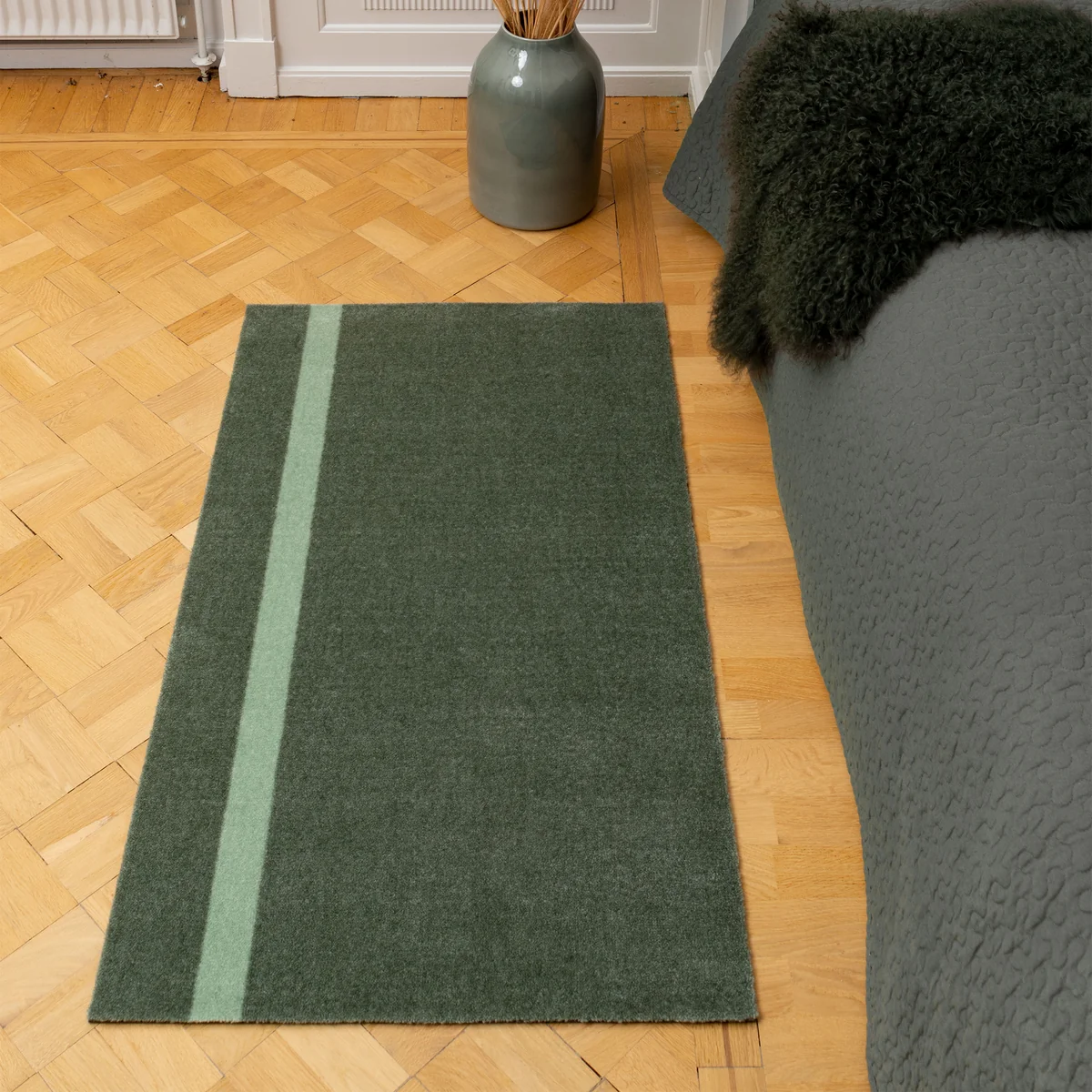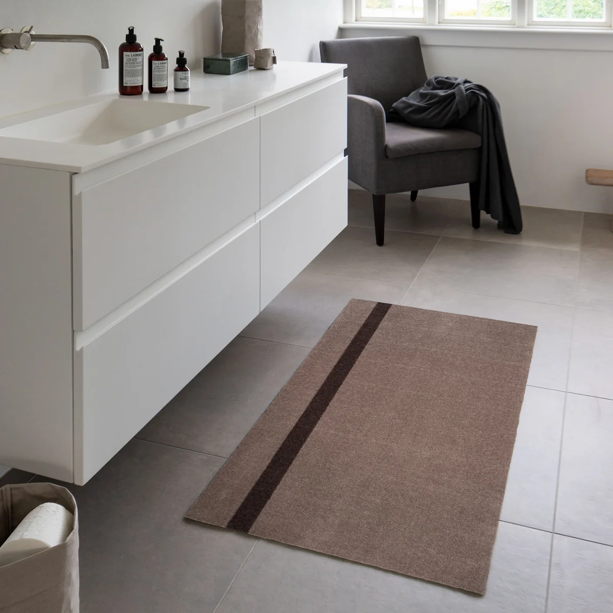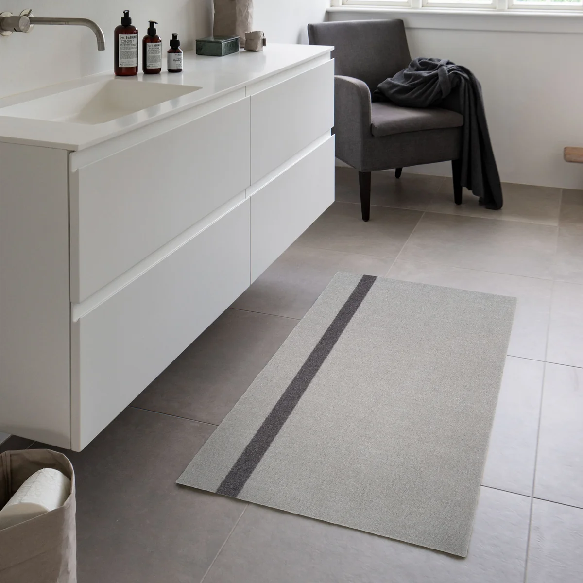 Der Stripes Vertical Läufer ist in unterschiedlichen Größen und Farben erhältlich. Er lässt sich simpel durch Staubsaugen, Spülen mit Wasser oder in der Waschmaschine bei maximal 30 Grad säubern.