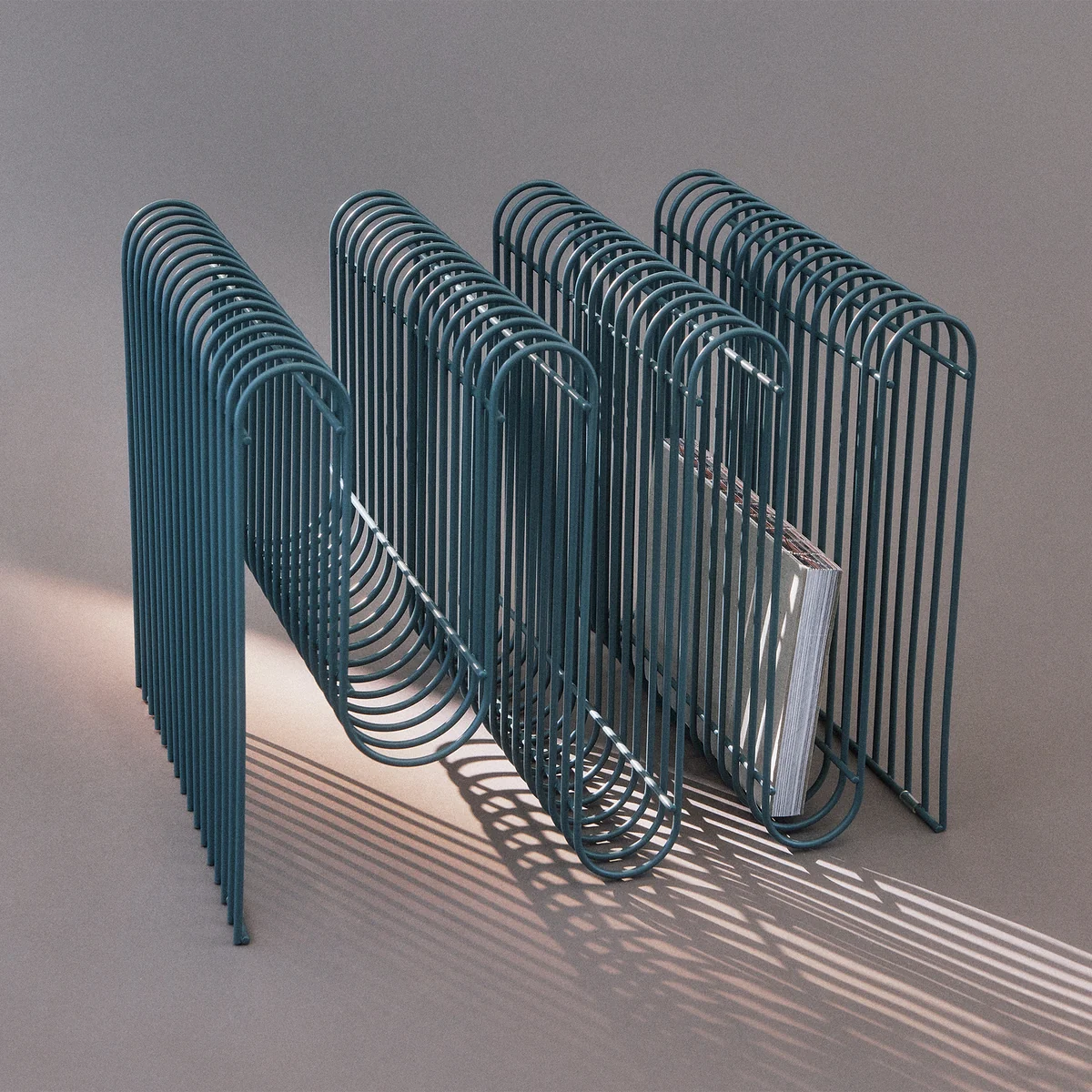 Der Curva Magazinhalter von AYTM zeichnet sich durch seine geschwungene, wellenartige Form aus, die Funktionalität und Ästhetik auf einzigartige Weise verbindet. Gefertigt ist der Halter aus zahlreichen Eisendrähten, die zusammengefügt eine stimmige, jedoch luftig-leichte Einheit ergeben.