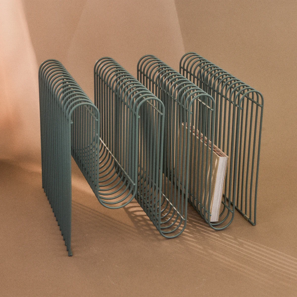 In dem kurvigen Designobjekt lassen sich Zeitschriften und die Lieblingsbücher stilvoll in Szene setzen. Der Magazinhalter fungiert damit nicht nur als praktisches Wohnaccessoire, sondern auch als dekoratives Element, das wunderbar neben dem Sofa oder dem Bett arrangiert werden kann.