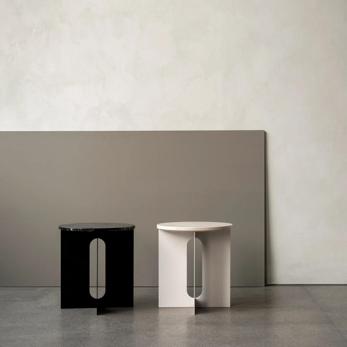 Die Tischplatte für den Androgyne Beistelltisch von Audo hat einen Durchmesser von 42 cm und besteht aus massivem Marmor. Die norwegische Designerin Danielle Siggerud entwarf die Platte passend zu dem Androgyne Beistelltisch, um ihm ein raffiniertes Detail zu verleihen.