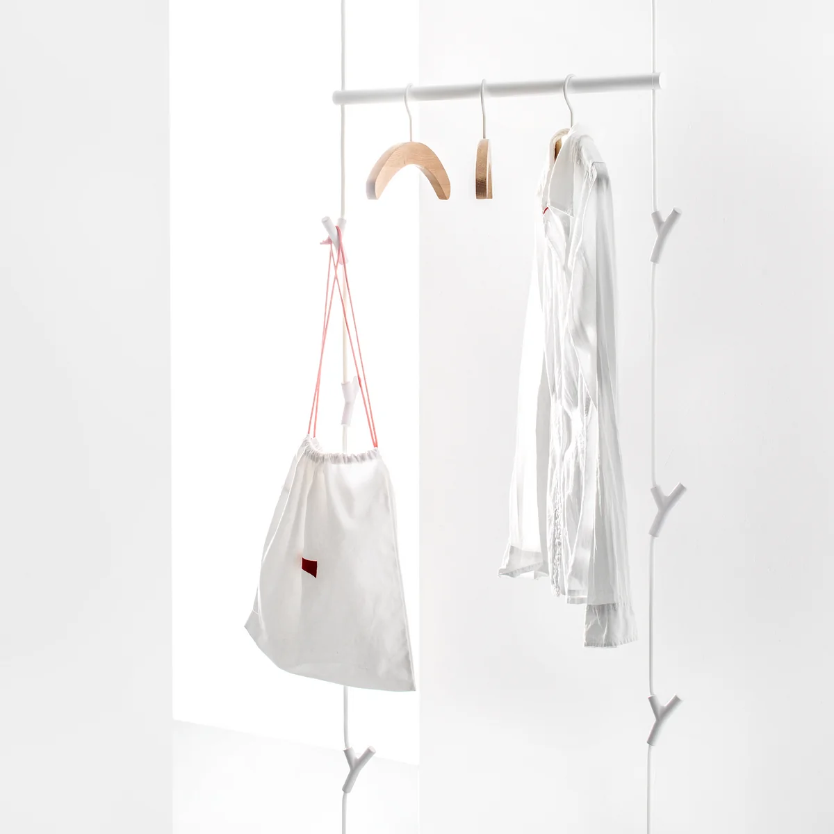 Die Wardrope Garderobenstange von Authentics ist eine moderne und pfiffige Kleiderstange. Ausgestattet mit zwei seitlichen Schrauben kann sie spielend leicht zwischen zwei Wardrope Seilen montiert werden, um eine stabile Aufhängung für alle Kleider zu garantieren. Zusammen mit den Seilen bietet sie eine ungeahnte Anzahl von Möglichkeiten die Garderobe zu variieren.