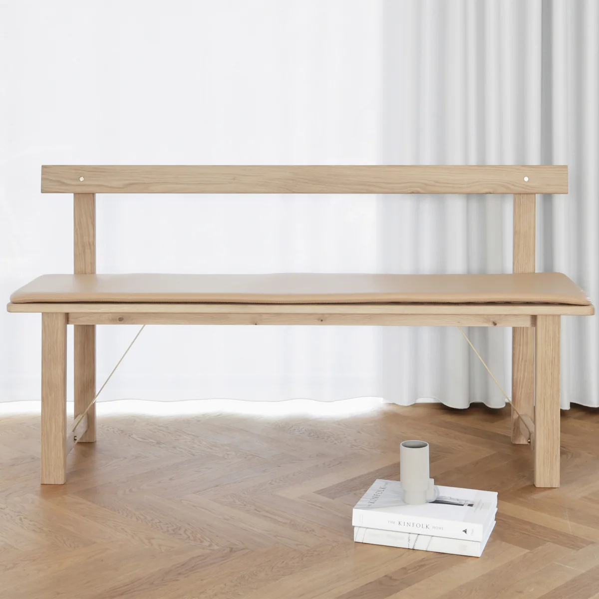 Die Designer Herman Studio sagen über das Produkt: „Mit dem Lederkissen wollten wir die schlanke und längliche Form der Sitzbank unterstreichen. Legt man das Kissen locker auf die Sitzfläche, bleibt das schöne Material der Bank noch gut sichtbar.“
