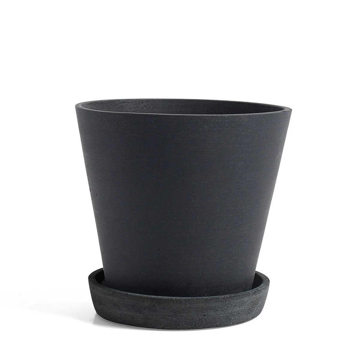 Der Blumentopf mit Untersetzer von HAY ist kompromisslos pragmatisch. Mit seiner klaren Form passt er überall hin, wo ein praktischer Blumentopf gebraucht wird.