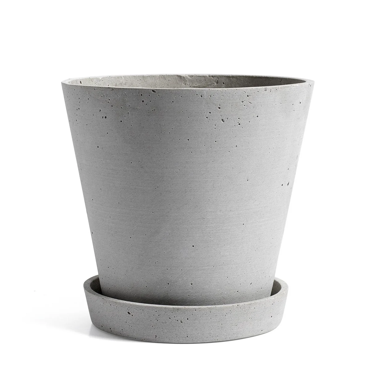 Der Blumentopf mit Untersetzer von HAY ist kompromisslos pragmatisch. Mit seiner klaren Form passt er überall hin, wo ein praktischer Blumentopf gebraucht wird.