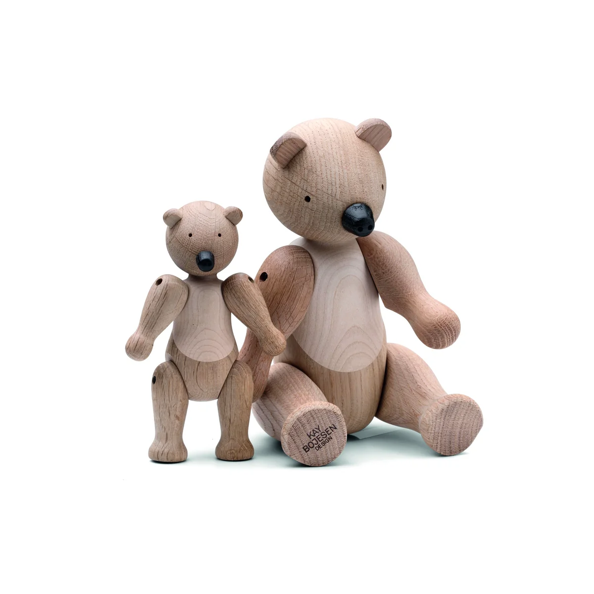 Kay Bojesens Bär besteht aus Eichen- und Ahornholz. Die hervorragende Verarbeitung und das hochwertige Holz bescheren Spielspaß über Generationen hinweg. Der Holz-Bär ist Teil einer Kollektion von Holz-Tieren, die der Designer Kay Bojesen zwischen 1935 und 1957 entworfen hat. Das dänische Unternehmen Rosendahl Design Group stellt die Holz-Tiere heute in enger Zusammenarbeit mit Kay Bojesens Familie her.