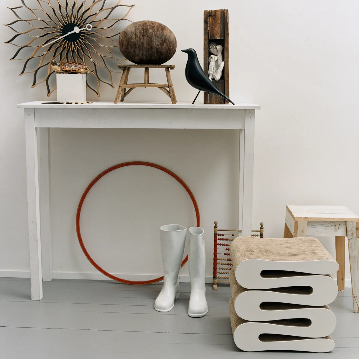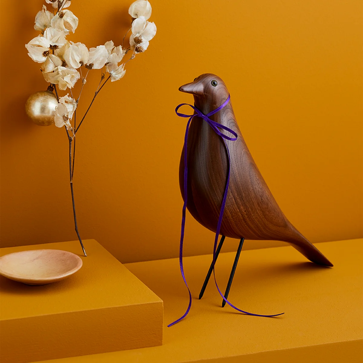 Der Vogel stammt ursprünglich aus der Bergregion der Appalachen im Nordosten der USA. In Anlehnung an das Original und in Zusammenarbeit mit Familie Eames produziert Vitra die Deko-Figur in Serie.