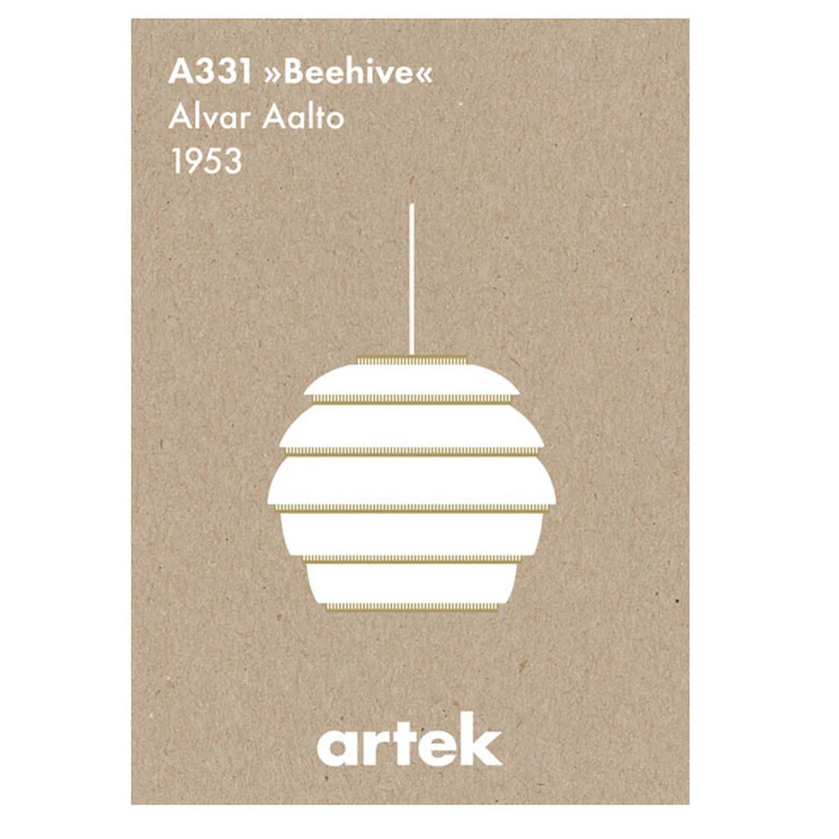 Das Artek Icon Poster Beehive bildet die berühmte Leuchte A331 ab, die Alvar Aalto 1953 entwarf. Ursprünglich für die Universität von Jyväskylä entworfen, verbreitete sich die Pendelleuchte sehr schnell, denn aufgrund ihrer charakteristischen Form ist die "Beehive" auch im ausgeschalteten Zustand dekorativ und skulptural. Mit dem Poster gibt Artek nun ein Statement ab, mit dem sich auch Menschen, die keine neuen Möbel brauchen, gutes Design in den Wohnbereich holen.