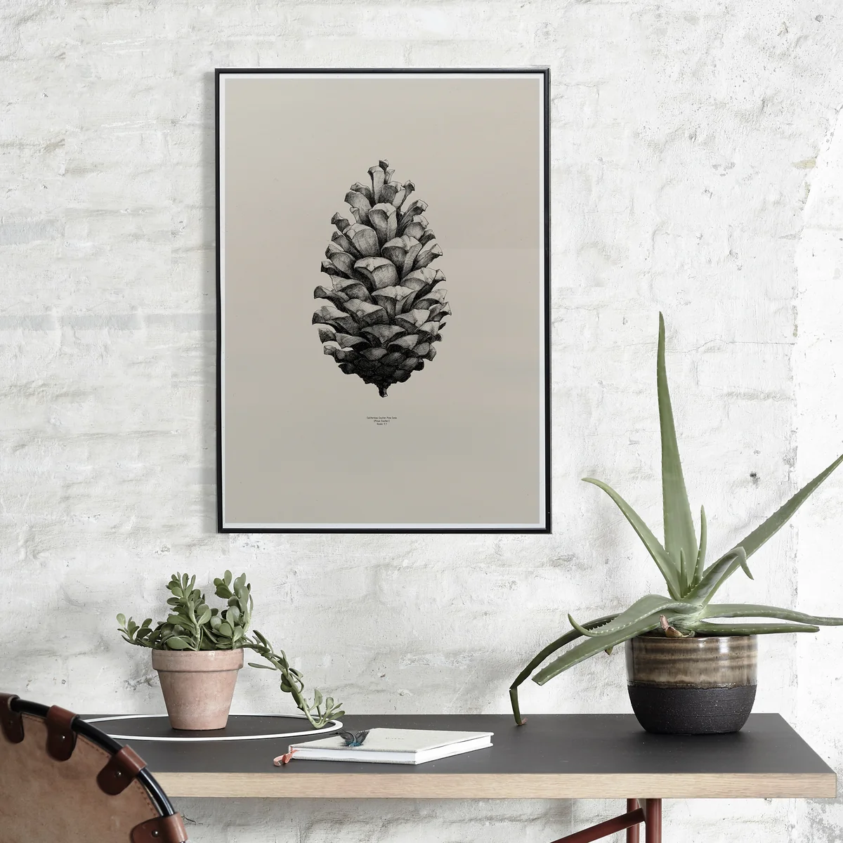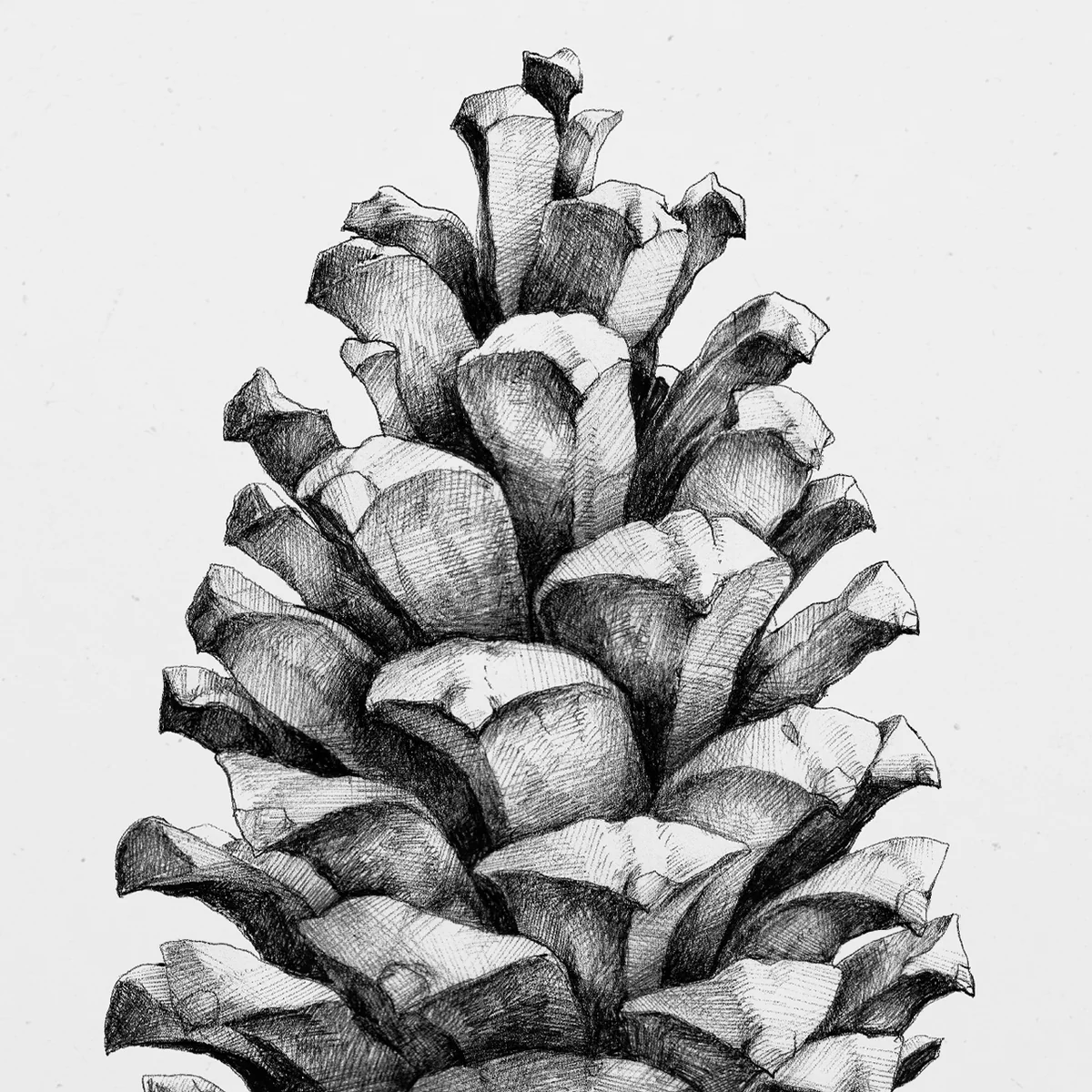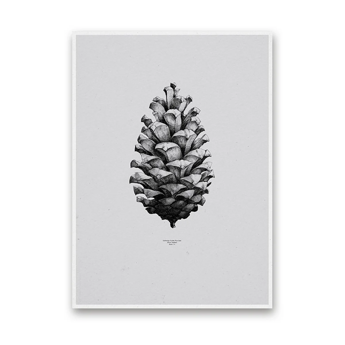 Das Poster Pine Cone bildet den weltgrößten Tannenzapfen ab. Der Zapfen ist im Maßstab 1:1 abgebildet, daher auch der Name des Kunstdrucks aus der Nature-Serie von Paper Collective.