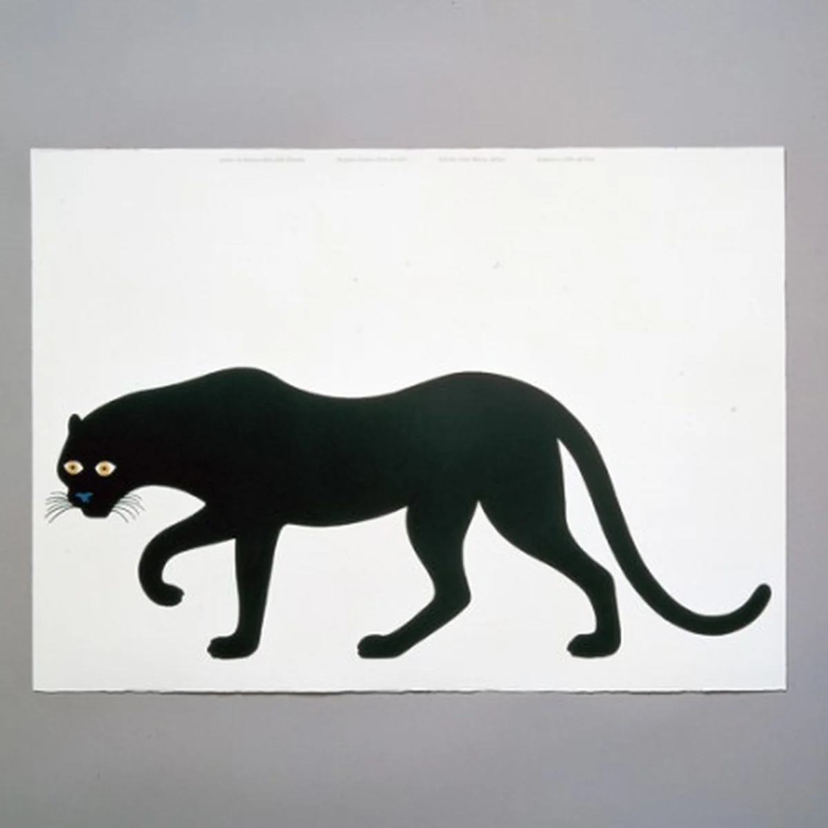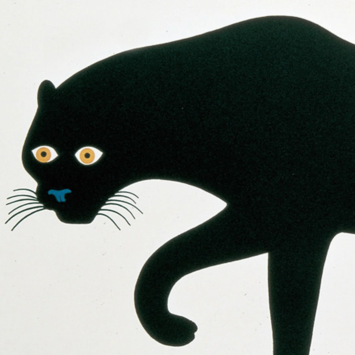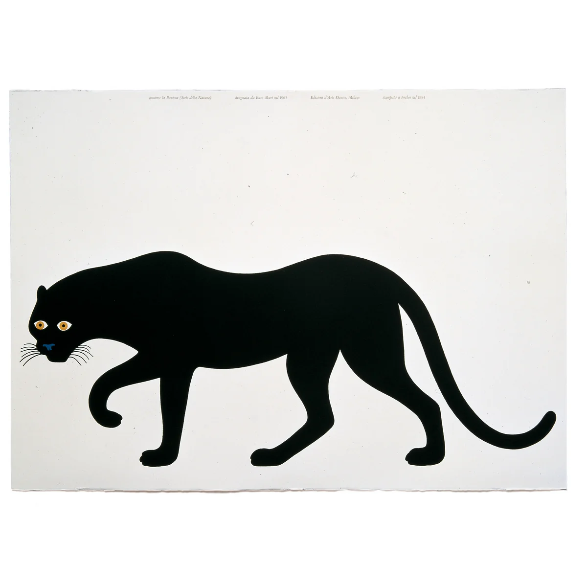 Die Serie della Natura vom Künstler Enzo Mari ist eine Serie von Grafiken aus der Art Edition von Danese Milano. Die Grafik "Quattro, la pantera" stammt aus dem Jahr 1965.