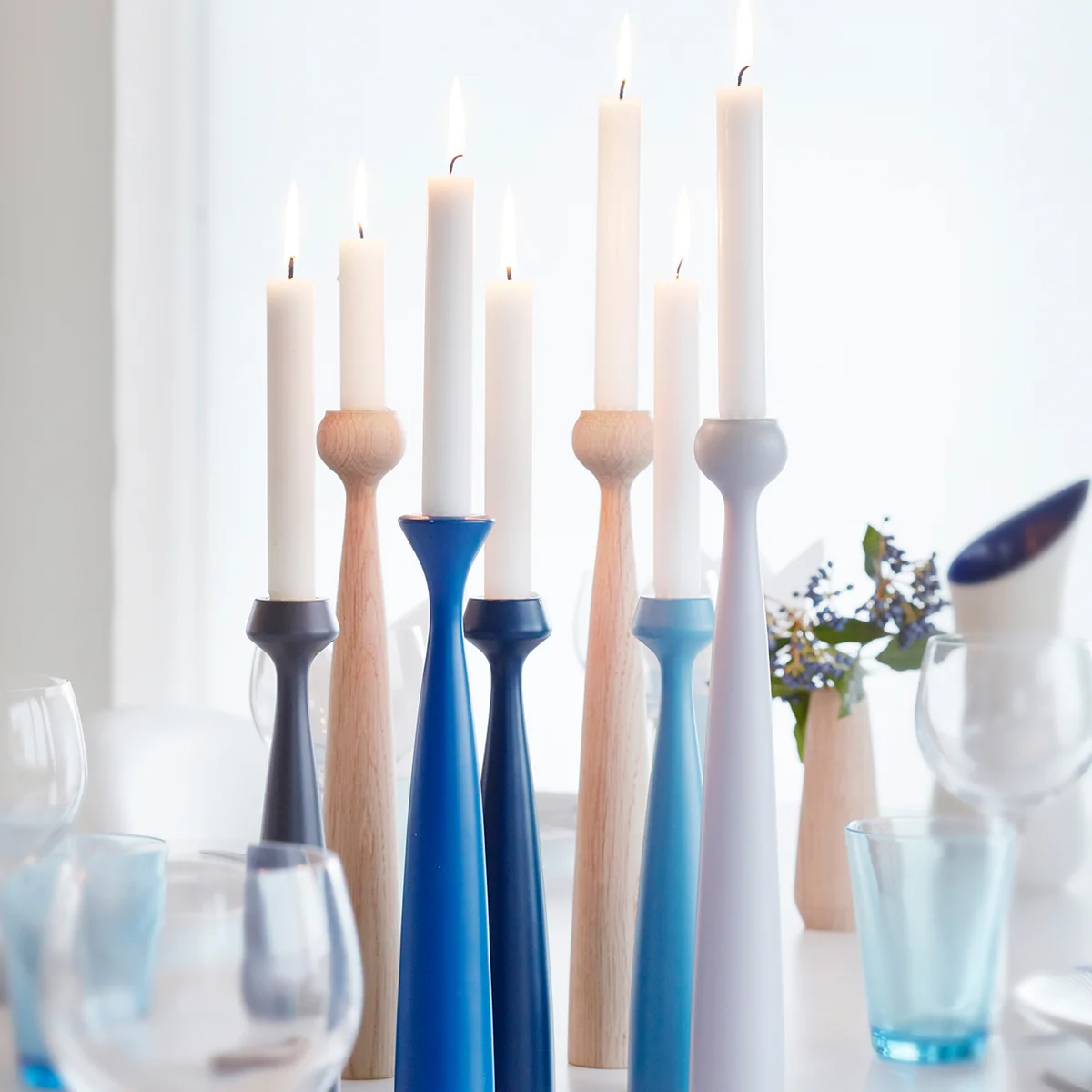 Anders Nørgaard gestaltete die Blossom Kerzenhalter für applicata. Lilie, Tulpe und Rose standen Vorbild für die hölzernen Kerzenständer, der wie ein Blumenstrauß am besten in der Gruppe zur Geltung kommen.