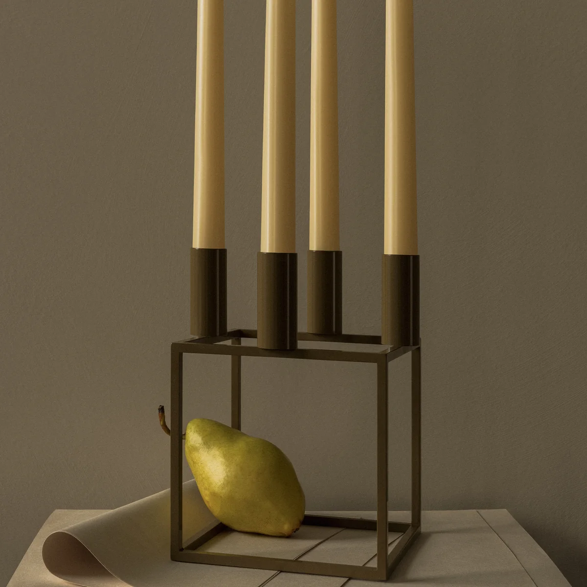 Mit einem scharfen Sinn für zeitgenössischen, funktionalistischen Stil entwarf Mogens Lassen den ikonischen Kubus Kerzenhalter im Jahr 1962.