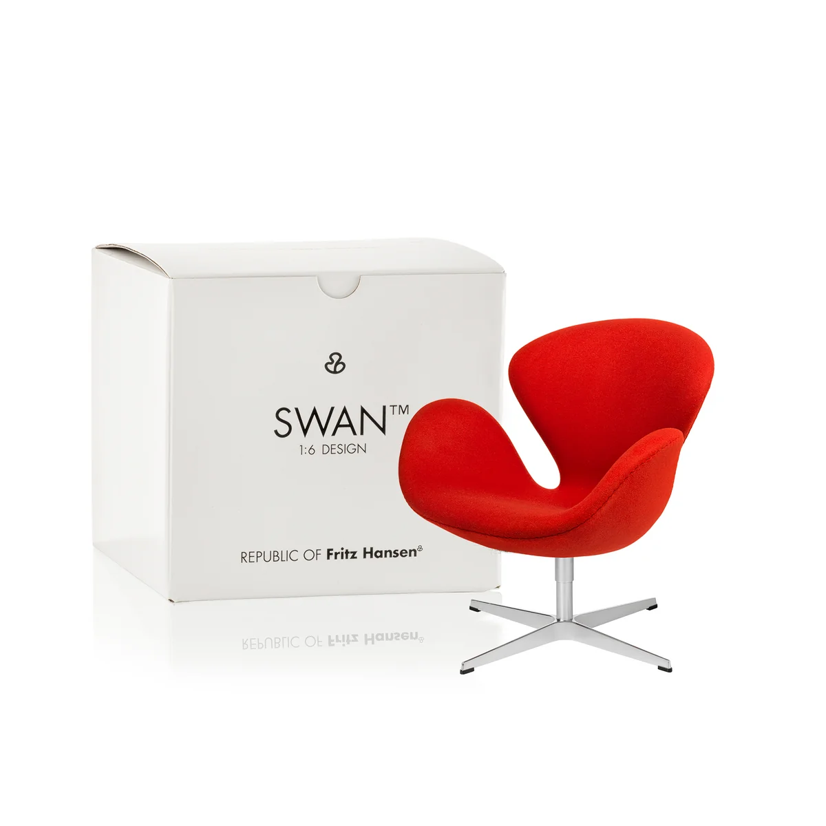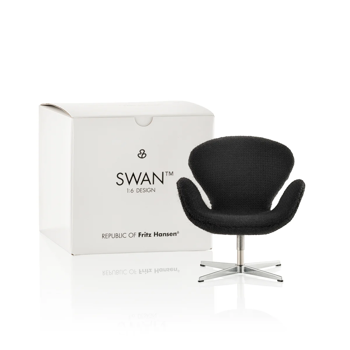 Für Sammler und Design-Begeisterte ist der Schwan Sessel hier in der Miniaturvariante mit einer Größe von 13,5 cm erhältlich, die wunderbar auf dem Schreibtisch, in der Vitrine oder auf dem Sideboard zur Geltung kommt.