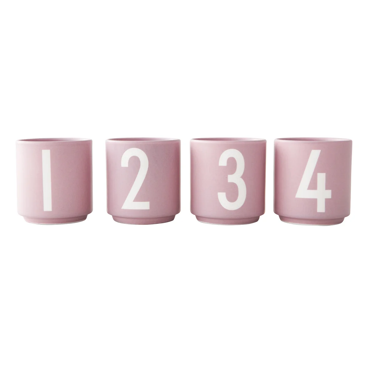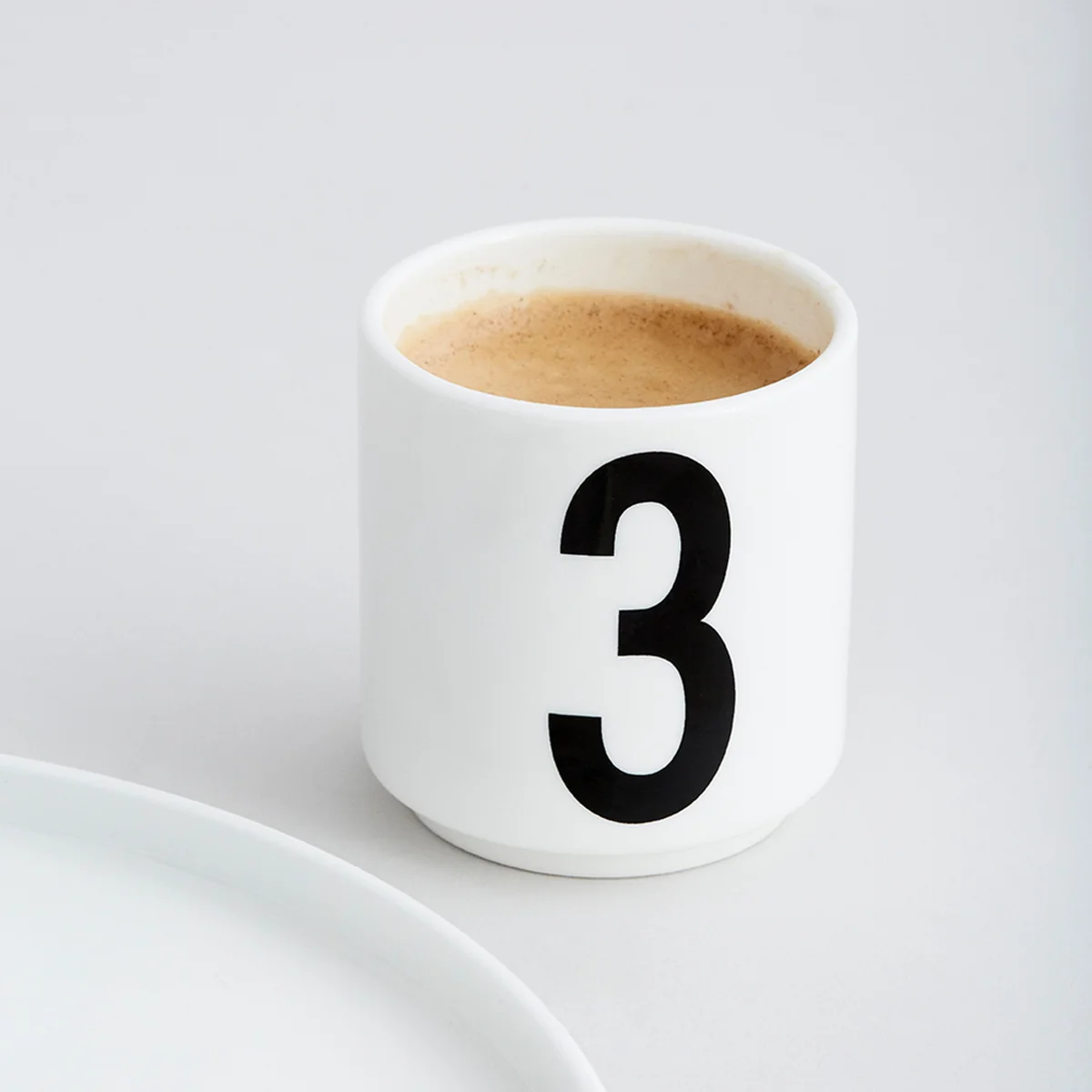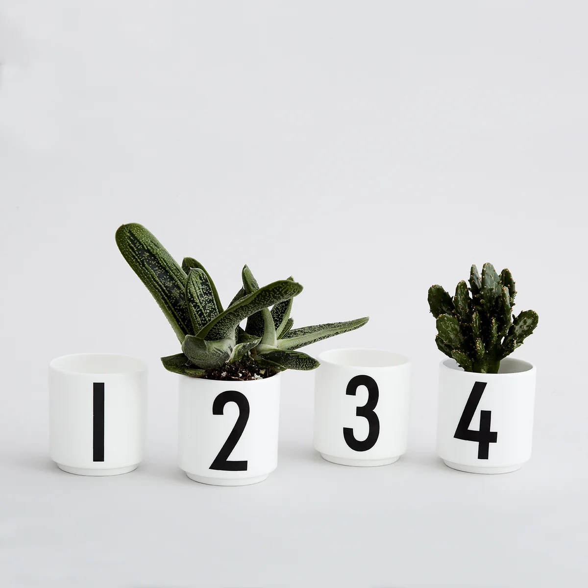 Die markanten Zahlen, die die Becher schmücken, wurden 1937 von dem dänischen Designer Arne Jacobsen entworfen. Ursprünglich für die interne Beschriftung des Aarhus Rathauses, zieren die Buchstaben, Zahlen und Zeichen nun vielfältige Heimtextilien, Geschirr und Büro-Utensilien von Design Letters. Modernes und spielerisches Design für Wortakrobaten, Grafik- und Design-Liebhaber.